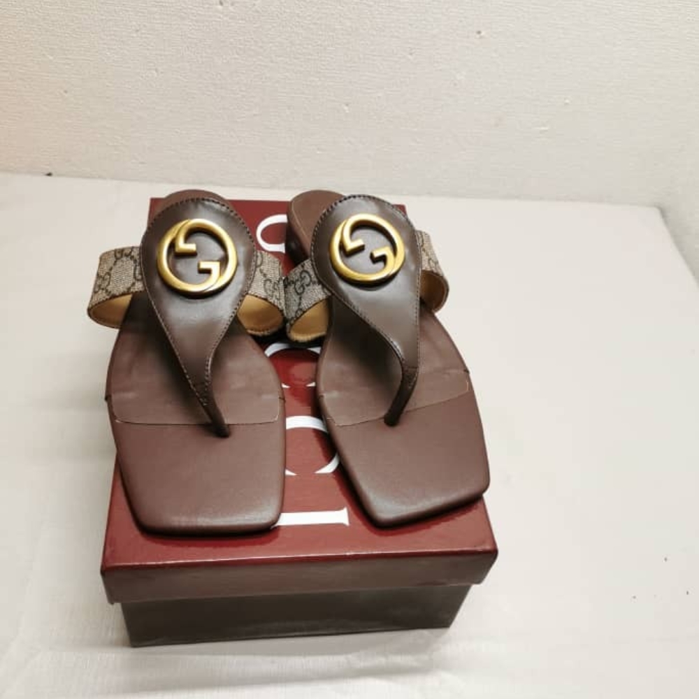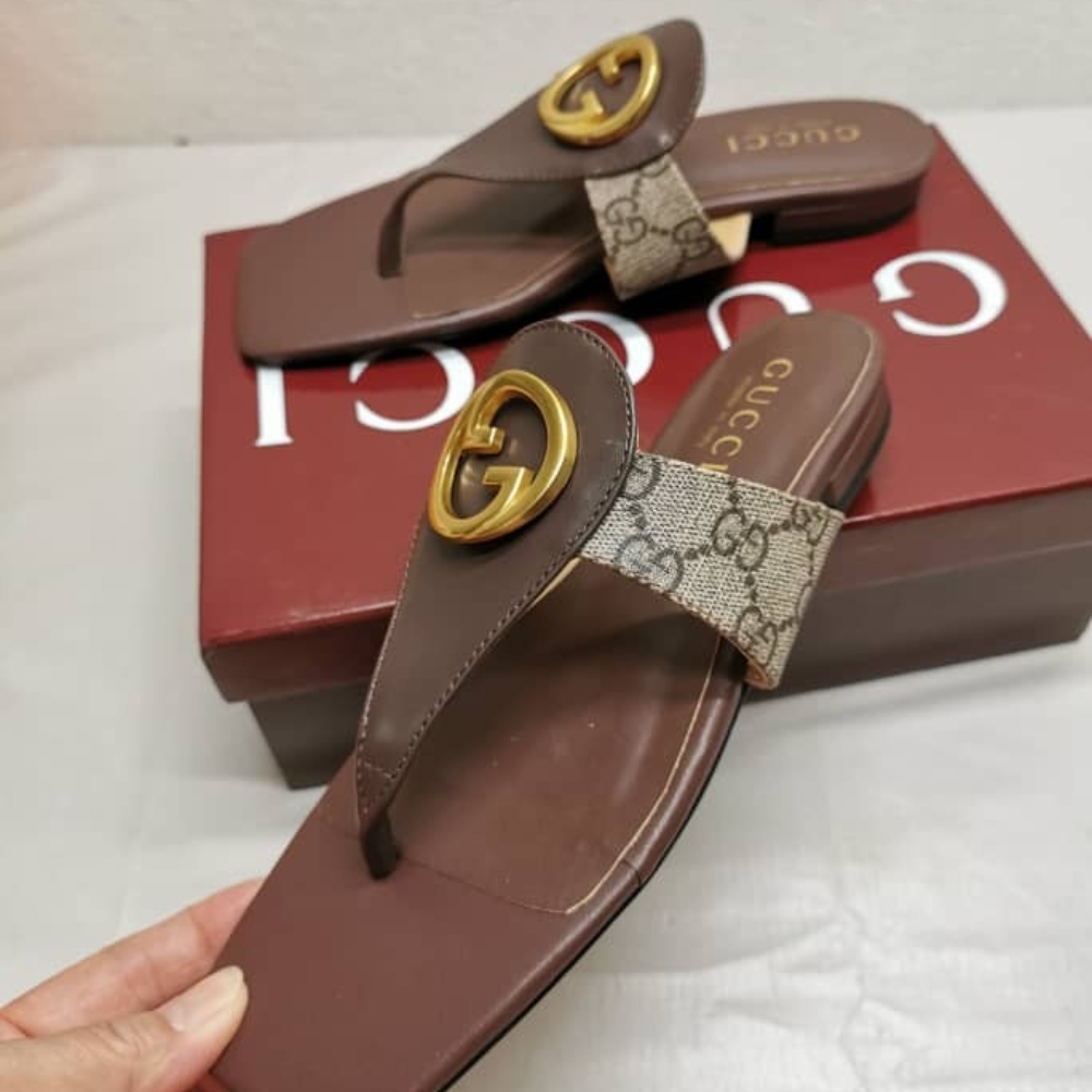 Gucci Women'S Blondie Thong Sandals Brown 752659 9I650 9769