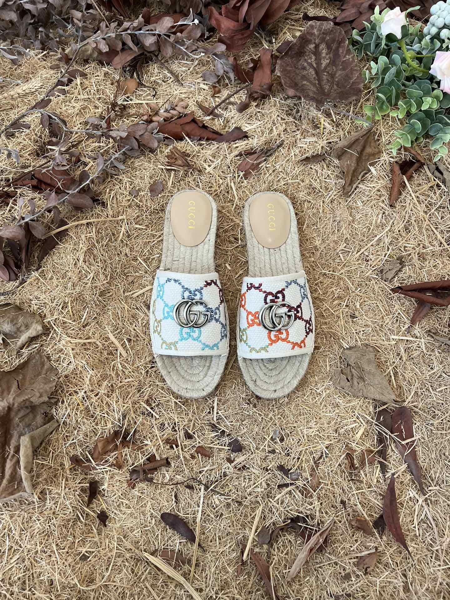 Gucci Women's GG Multicolor Slip On Espadrille Slide Sandals 678037 UFT70 8470