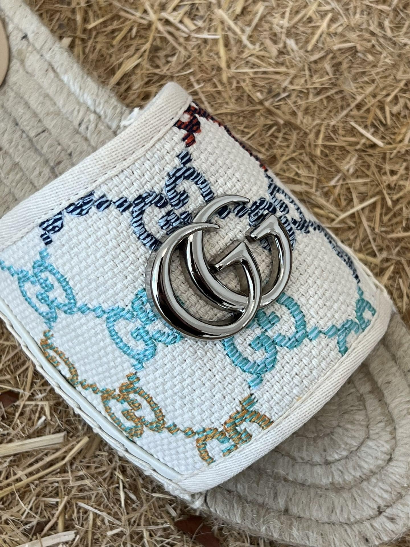 Gucci Women’s GG Multicolor Slip On Espadrille Slide Sandals 678037 UFT70 8470