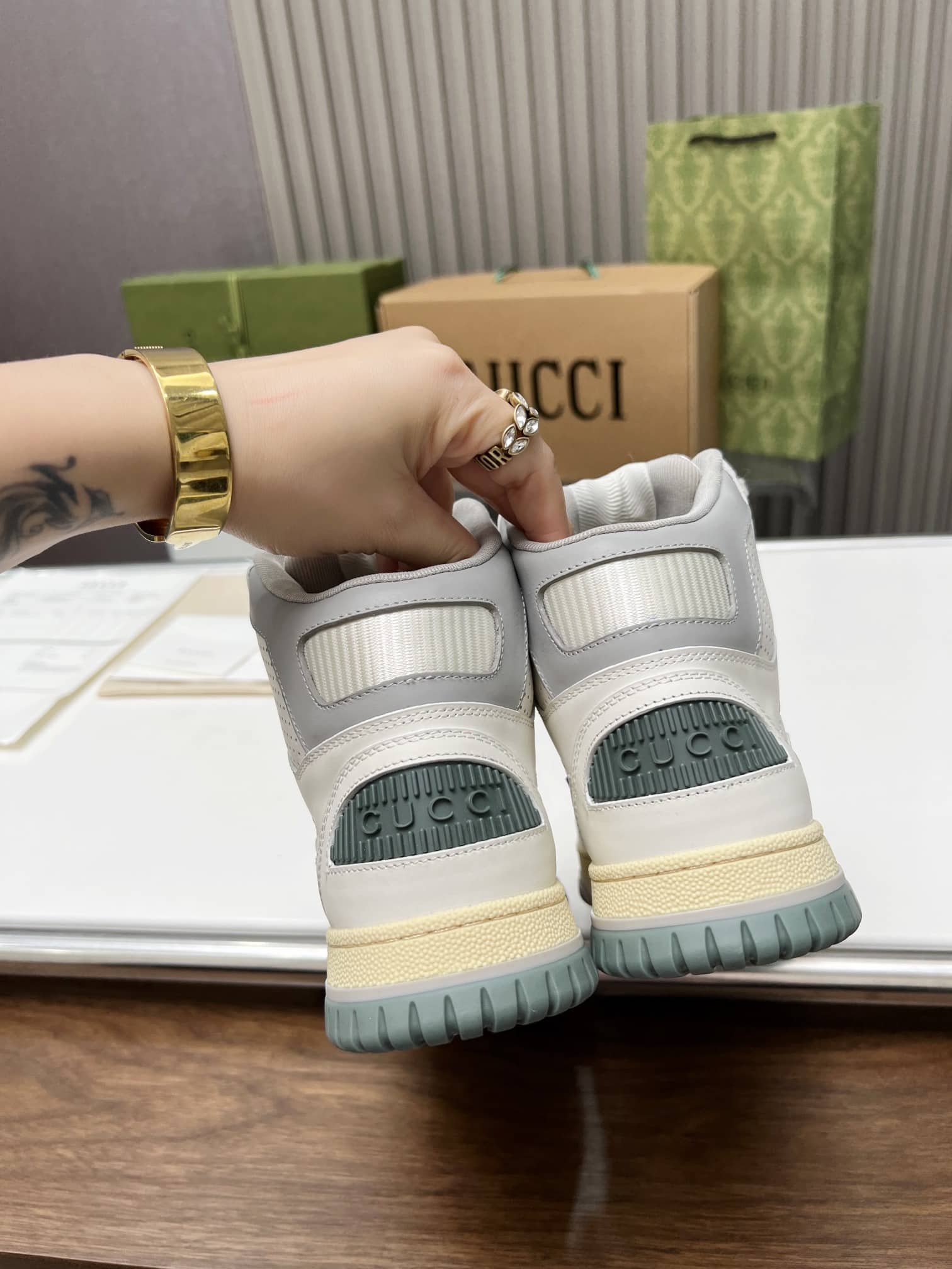 Gucci Women'S High Top Distressed Effect Sneaker White 765437 Aacv6 9161