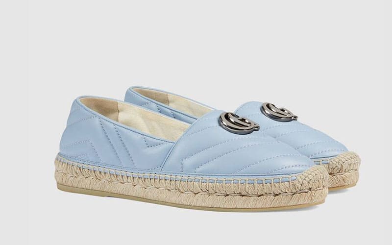Gucci Women’S Leather Espadrille With Double G Blue ‎628086