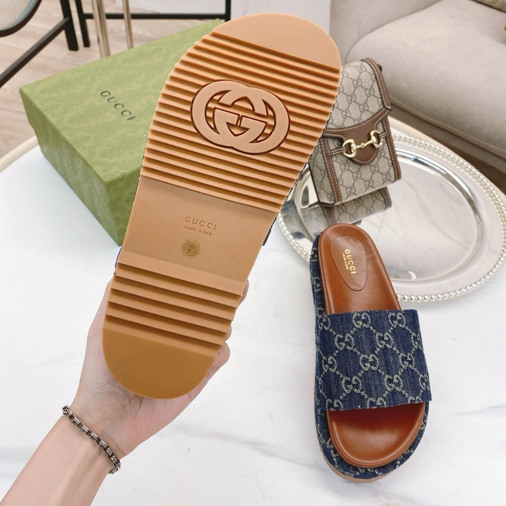 1:1 Replica Shoes – Gucci Women’s Platform Slide Sandal GG Denim Blue 623212 2KQ00 4402