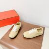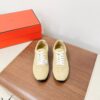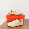 These Hermès sneakers boast an elegant and sophisticated look. The minimalist design is highlighted by an embroidered “H” logo on the side, paired with white laces and a contrasting black rubber sole. These sneakers are designed for comfort and style, perfect for those who appreciate luxury.