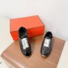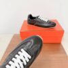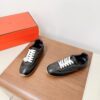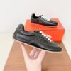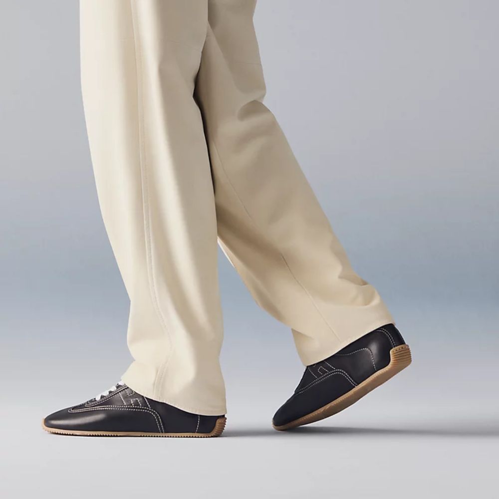 These Hermès sneakers boast an elegant and sophisticated look. The minimalist design is highlighted by an embroidered “H” logo on the side, paired with white laces and a contrasting black rubber sole. These sneakers are designed for comfort and style, perfect for those who appreciate luxury.