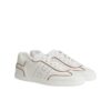 This pair of Hermès white leather sneakers offers a clean, sophisticated look with minimalist detailing. The shoes are crafted from smooth white leather with subtle perforated accents forming the iconic “H” logo on the sides. The fine contrast stitching in warm tan adds a touch of elegance, while the sturdy rubber sole ensures durability and comfort.