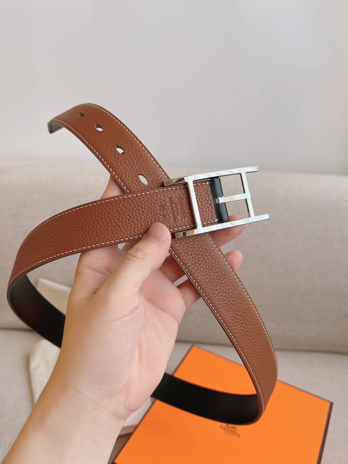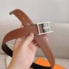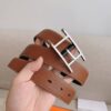 Hermes Quentin Reversible Belt Brown Silver Metal 32Mm