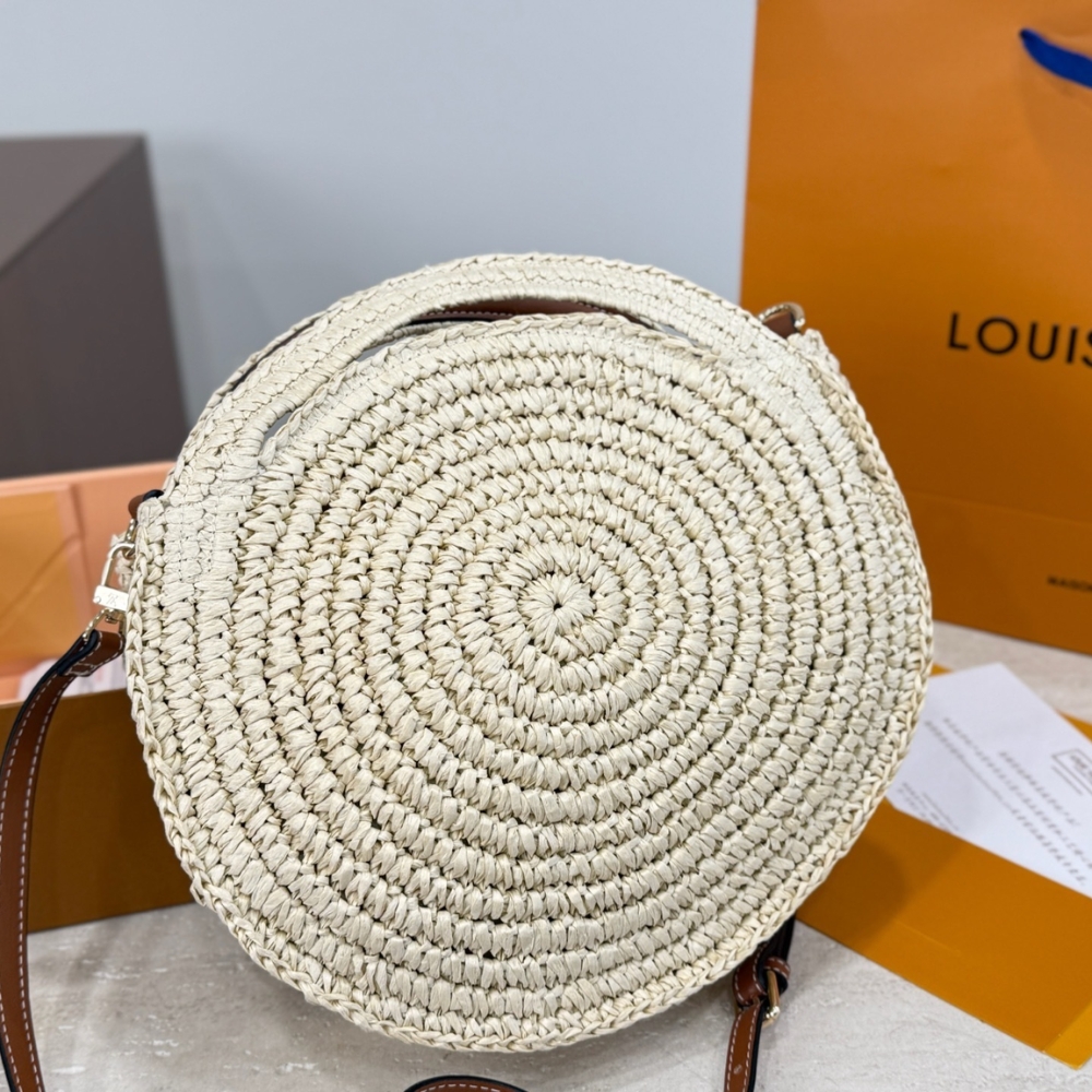Replica 1:1 – Louis Vuitton Around Me Shoulder Bag Raffia White 28Cm