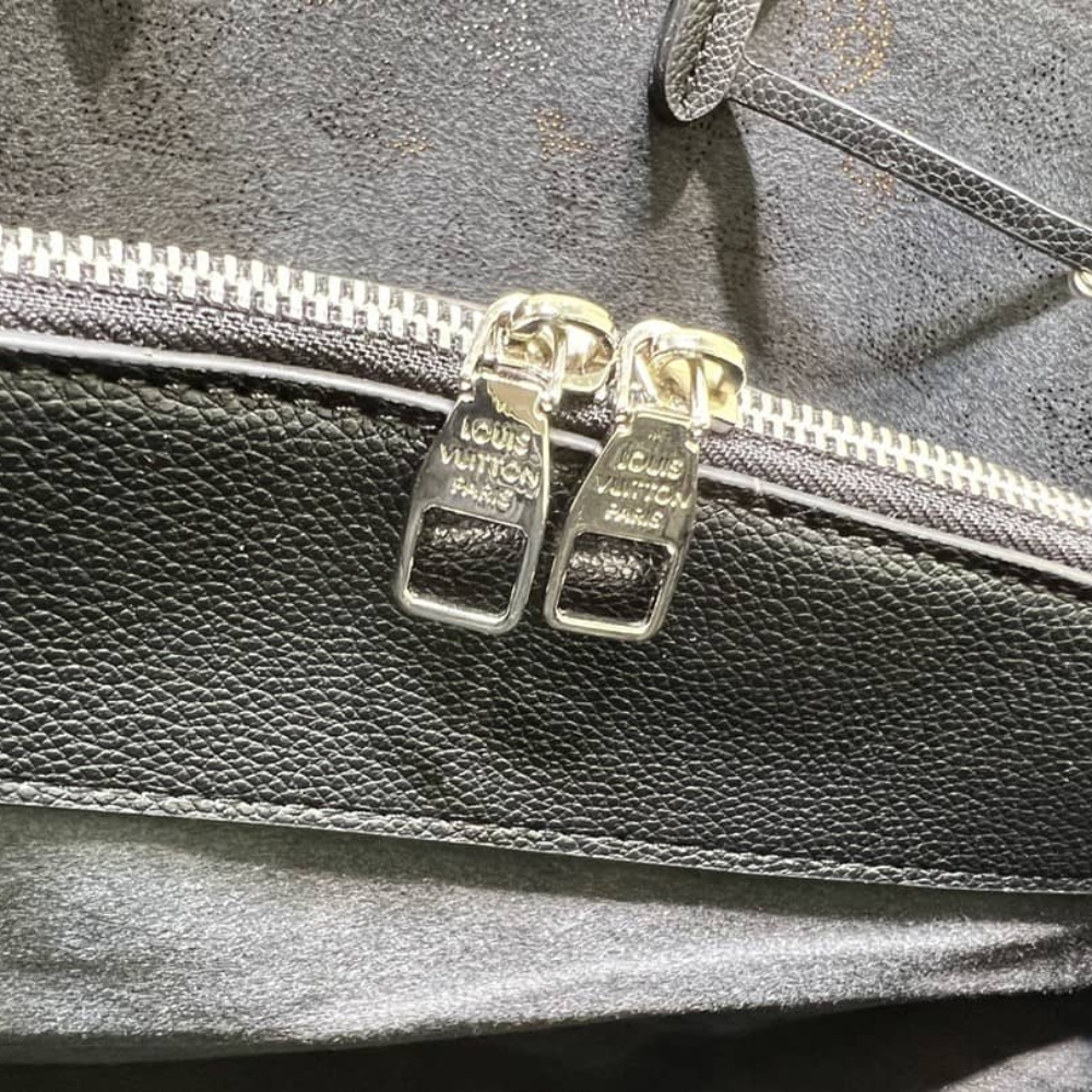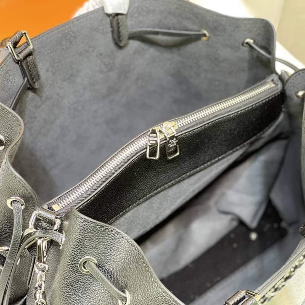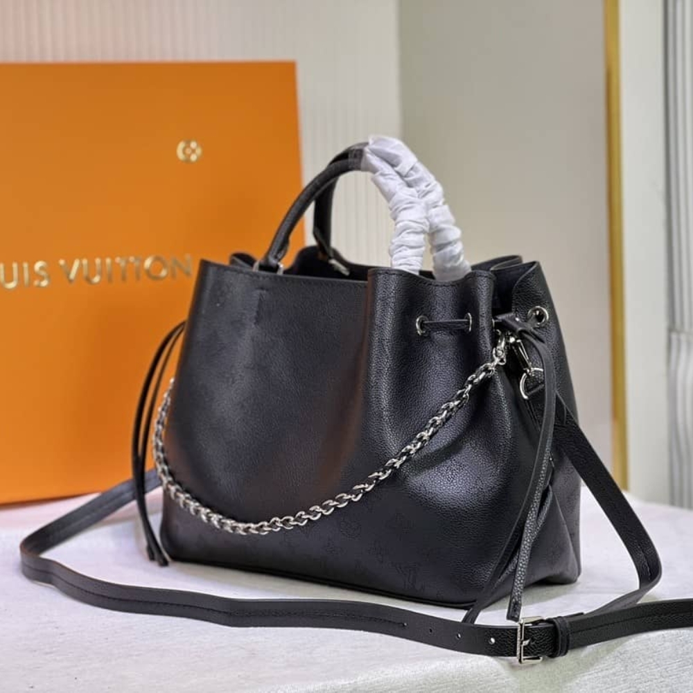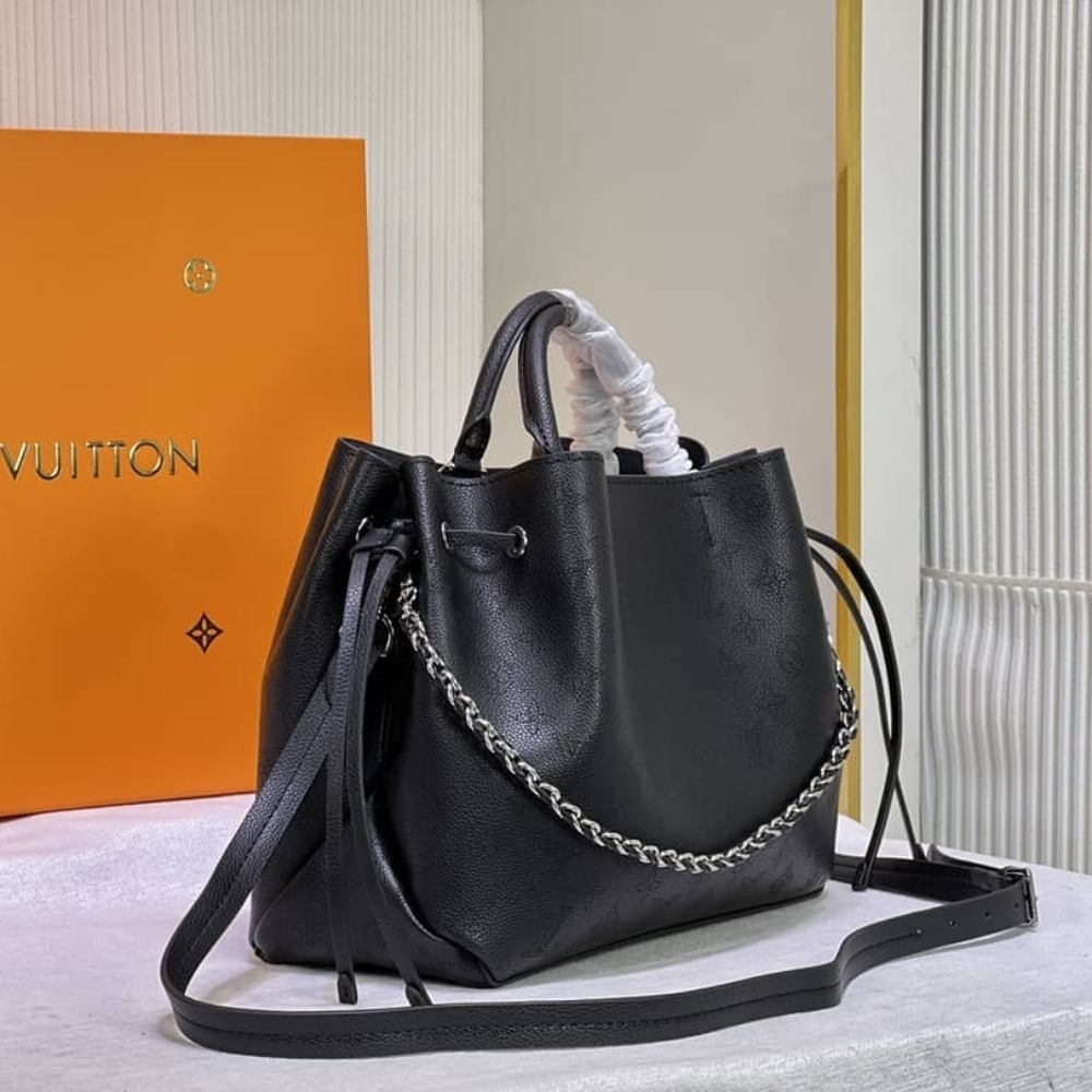Louis Vuitton Bella Tote / Black / 12.6 x 9.1 x 5.1 inches / Silver hardware / Mahina Leather / Can use handle or crossbody bag / For Women