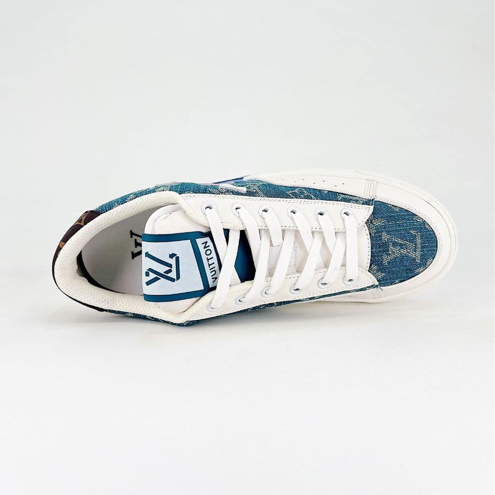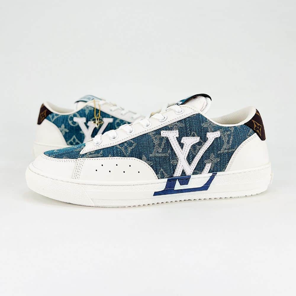 The Charlie Trainers are Louis Vuitton’s first eco-designed shoes as well as its first unisex model. This version replicates the look of Monogram denim and is crafted from 90% sustainable materials, including recycled polyester laces and a recycled rubber outsole. It features an oversized LV Initials signature on the side and the LV upcycling logo on the tongue.