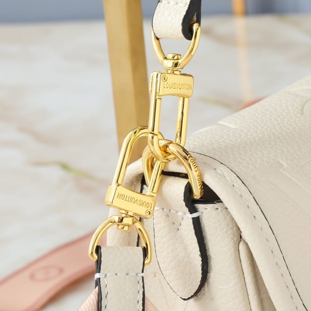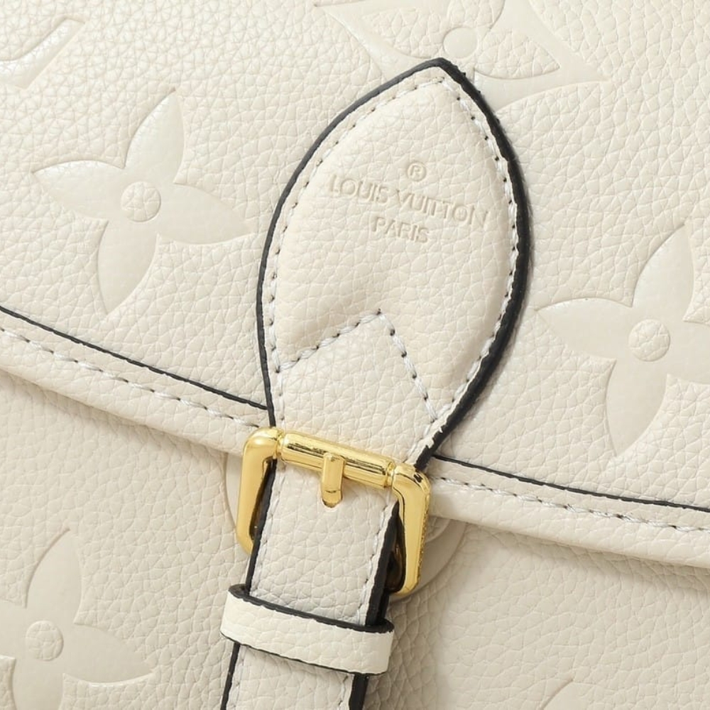 The Diane bag is crafted from Monogram Empreinte, an embossed leather from the French fashion house. The design features a detachable leather strap for carrying by hand or over the shoulder, combined with a wide cross-body strap woven with the “Louis Vuitton” logo in a Jacquard style. This bag will complement both casual and elegant outfits.
