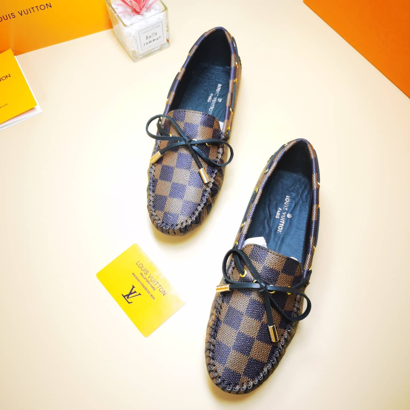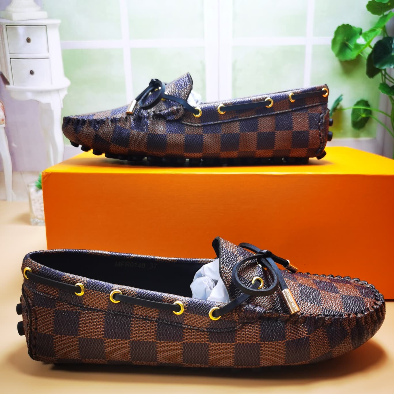 A rubber-pad outsole with the Damier pattern. - A leather lace with Louis Vuitton-engraved, gold-tone lace tips.