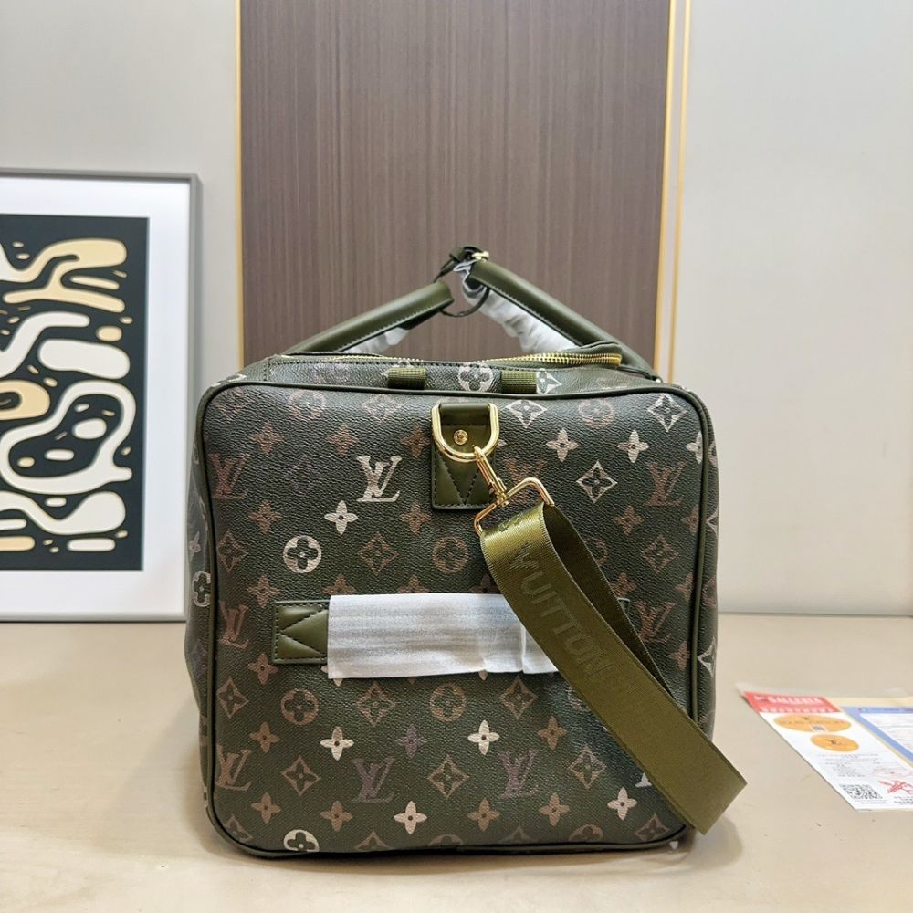Pharrell Williams brings a trekking vibe to a timeless shape. The Keepall 50 Backpack is reimagined for modern travel in Monogram Surplus coated canvas, with its camouflage feel. The square shape and multiple carrying options make it adaptable. A zipped front pocket offers quick access to essentials and stores the detachable straps.