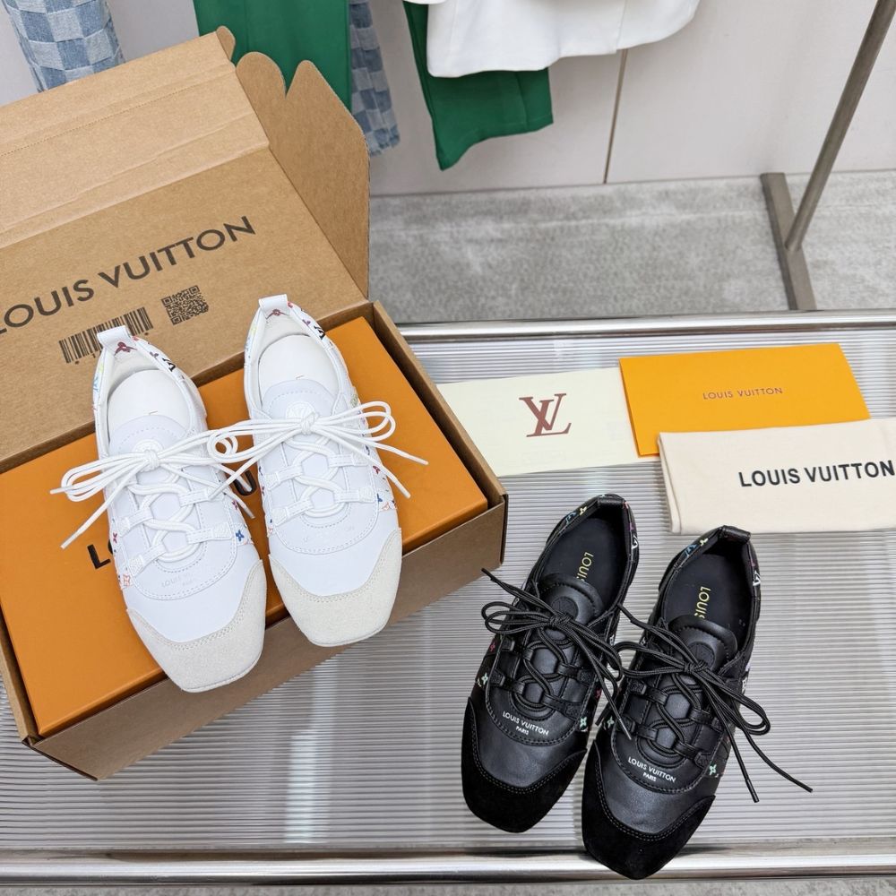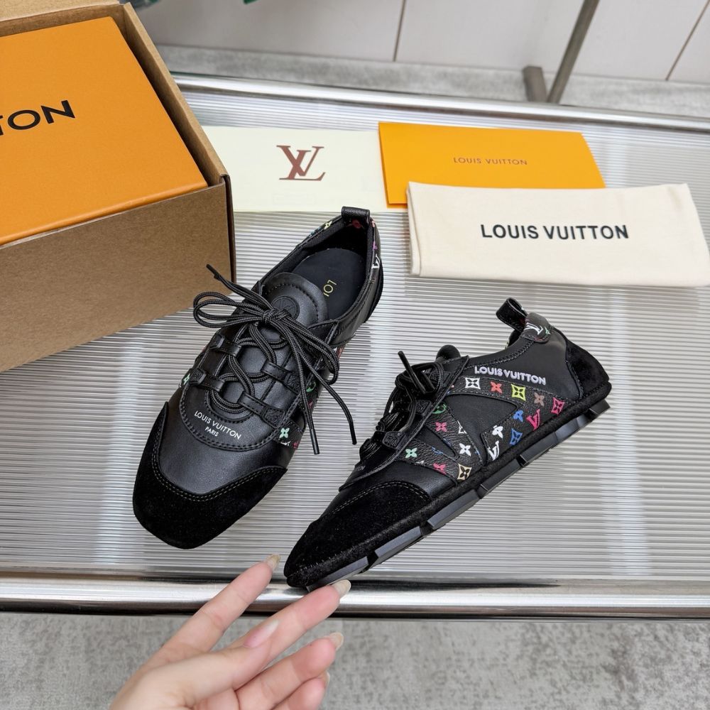The LV Sneakerina sneaker ballerina combines exceptionally Monogram Multicolore canvas, created for Louis Vuitton by artist Takashi Murakami. The dynamic LV Initials, a signature of this design, are crafted from the colorful canvas, as is the trim at the back. This model has a sacchetto construction for optimum suppleness and lightness.