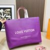 The MM Shopper Tote is crafted from leather and features a Louis Vuitton logo inspired by Maison shopping bags. The spacious interior is lined with cotton and incorporates multiple convenient compartments, including a zippered pocket for valuables. Two top handles and a detachable shoulder strap complete this practical and elegant design.