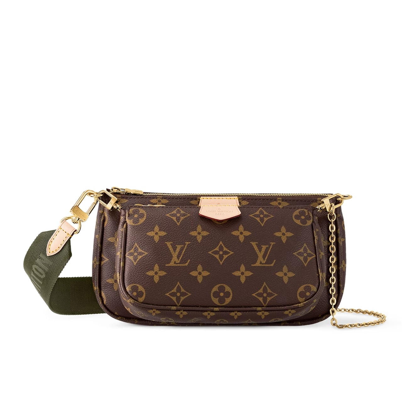 Louis Vuitton Multi Pochette Accessoires / Khaki Green / 9.4 x 5.3 x 1.6 inches / Monogram canvas / Gold-hardware / Crossbody Bag