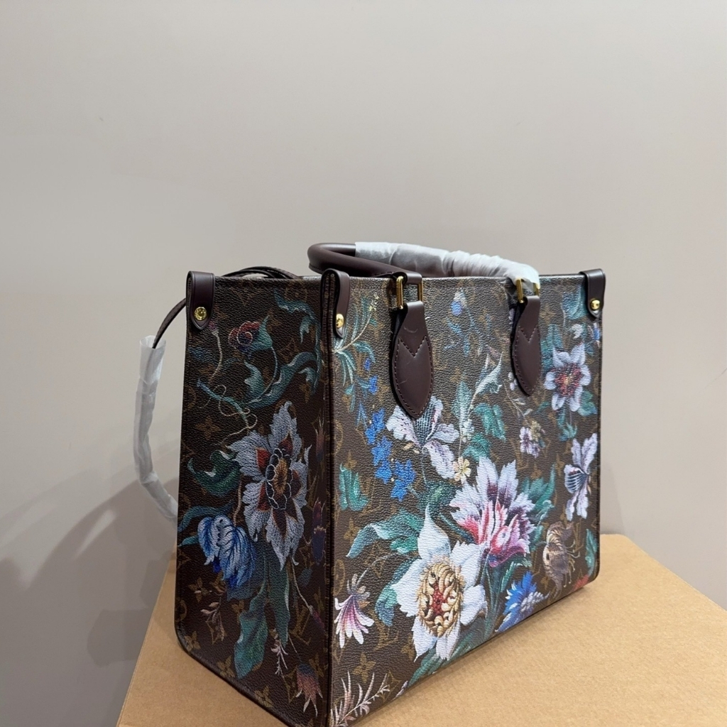 Louis Vuitton Onthego MM / Monogram Canvas Ebene / 12.6 x 10.2 inches / Gold-color hardware / Fits smartphone, wallet, daily items / Handle Bag for Women
