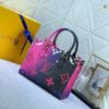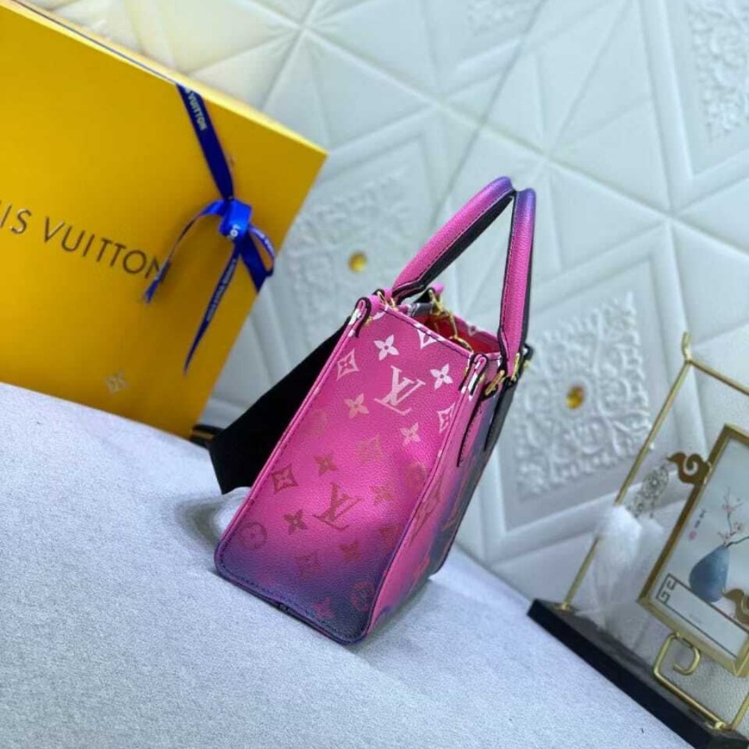 A soft cream-tone makes the Monogram Empreinte leather of this OnTheGo PM bag seem luminous. The LVs and Monogram embossed into the leather are perfectly complemented by the rectangular lines of this small tote. It can hold smaller essentials like a mini tablet. Two rolled-leather top handles and a detachable strap give carry options.