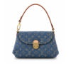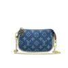 The Louis Vuitton Monogram Denim Pleaty bag. It is crafted from monogram denim in a blue shade with natural leather trim and gold-tone hardware. The bag features a flap with a push-lock closure and a single shoulder strap. This particular style, the Mini Pleaty, was produced in 2006.