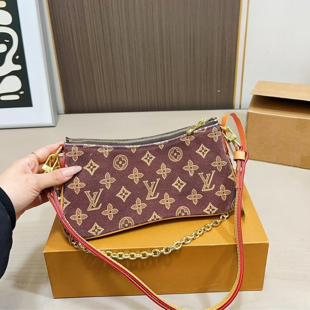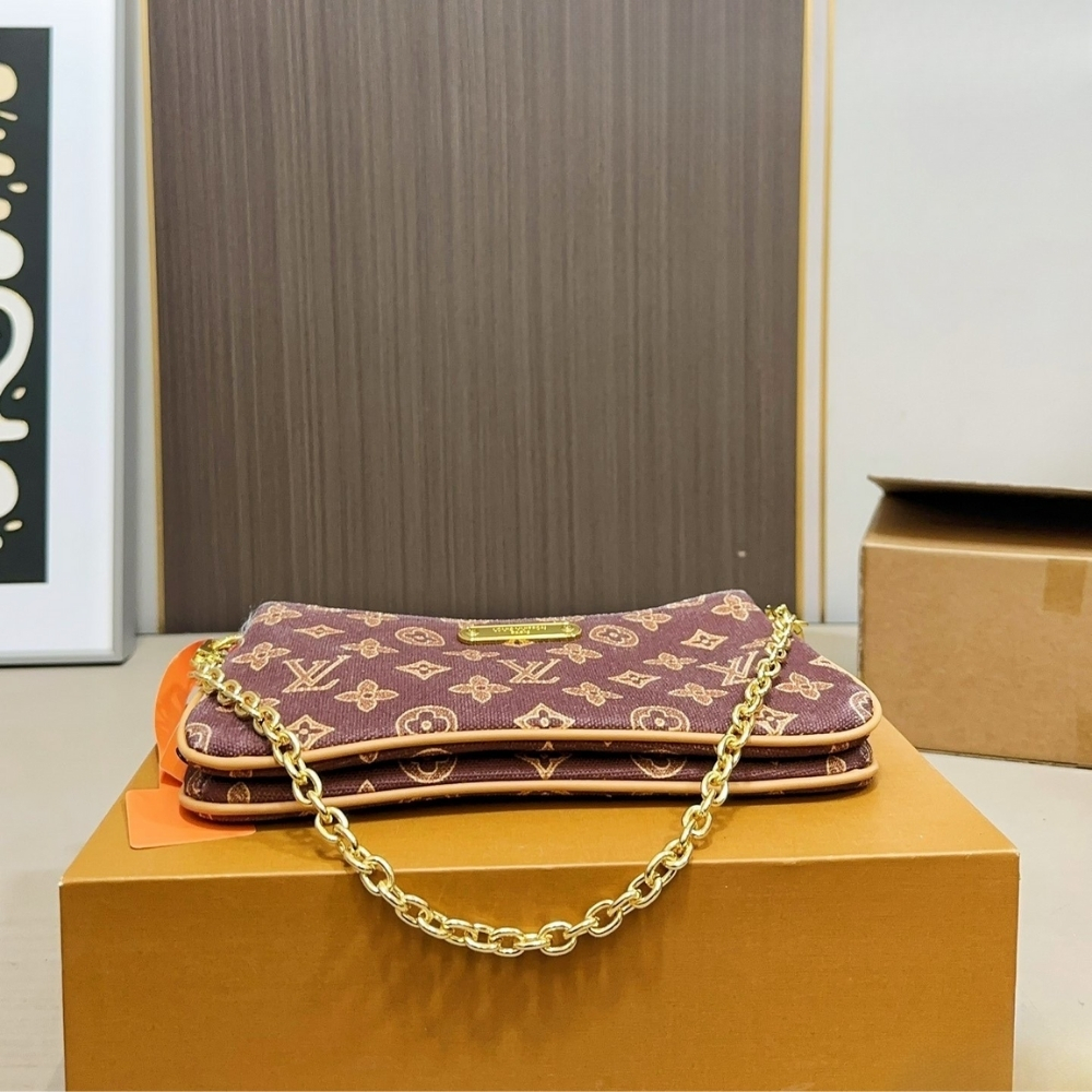 This vibrant edition of the Liv Pochette is designed in celebration of the 130th anniversary of the Louis Vuitton Monogram. Offered in a chic Brown hue, it features the iconic pattern set against linen and canvas, and is trimmed. The elegant chain matches the signature plaque in a sleek gold-toned finish.