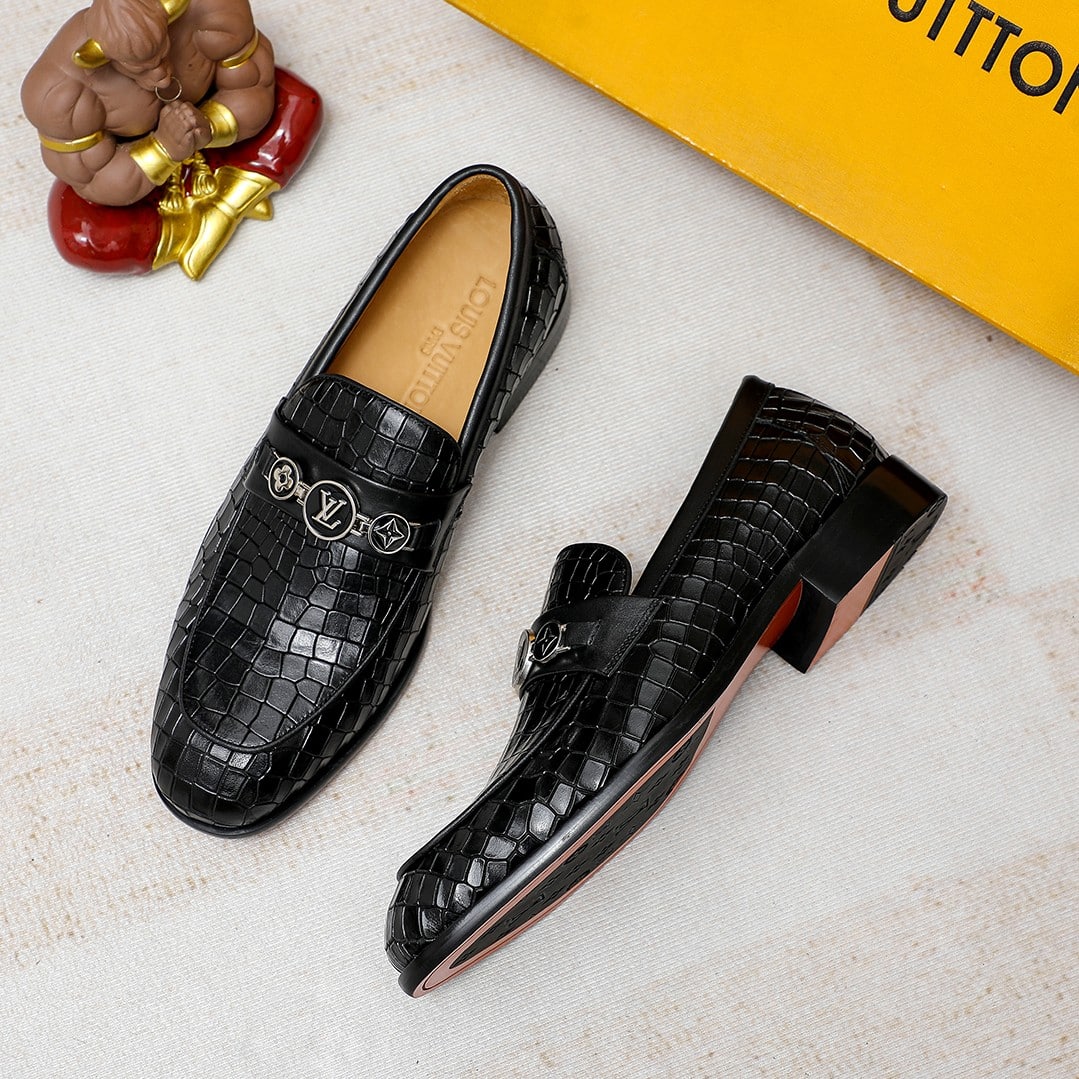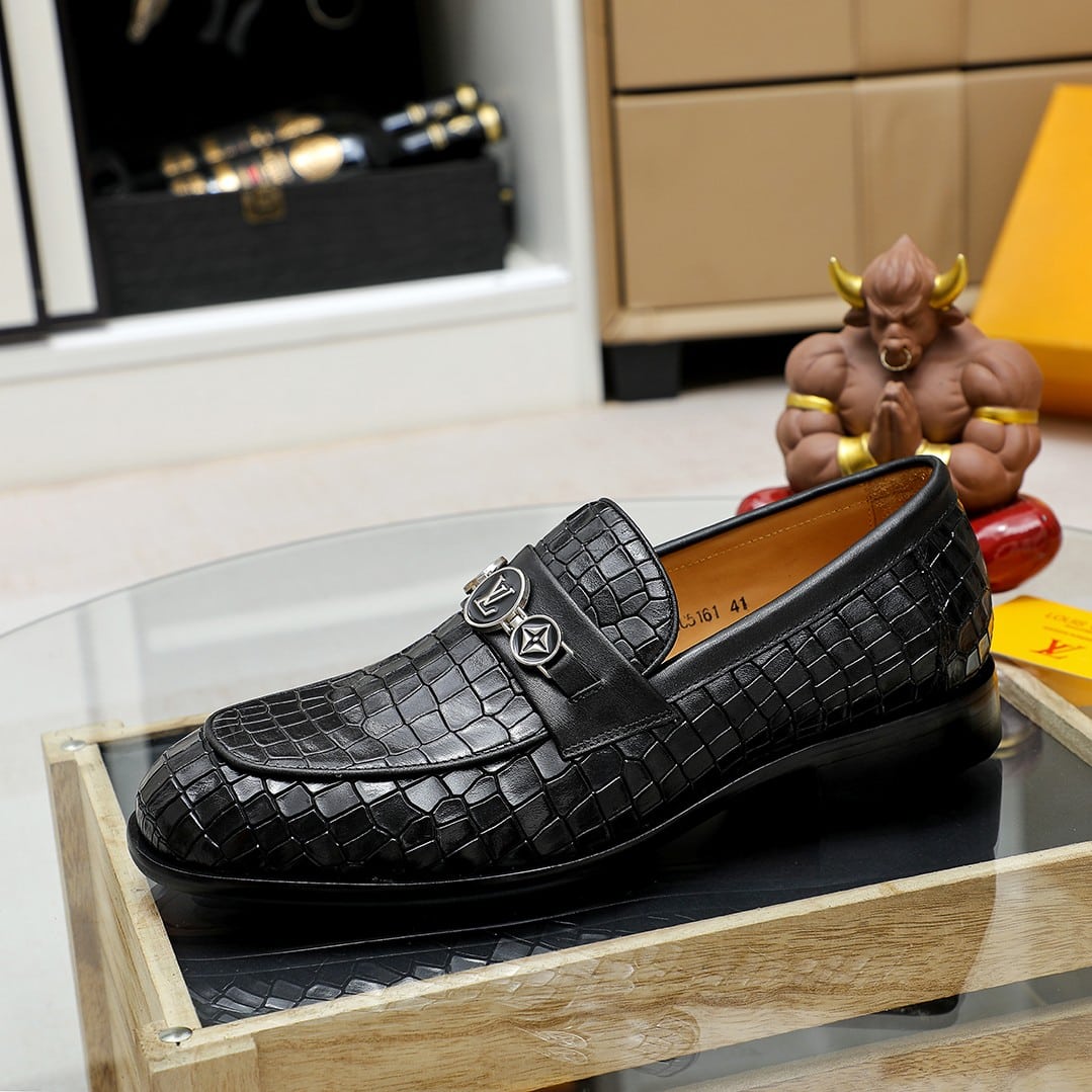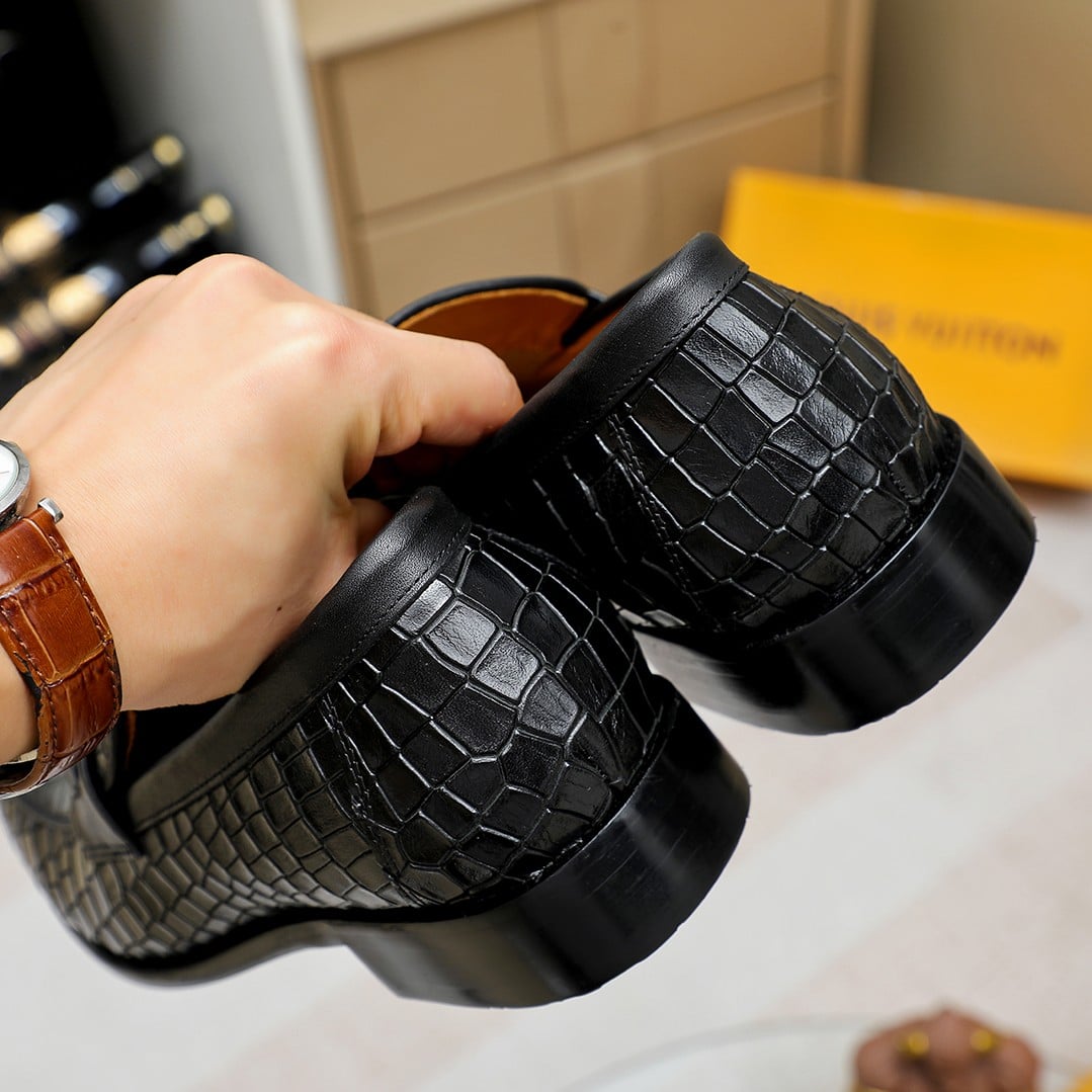 Louis Vuitton Souliers Club Loafers Crocodile Black