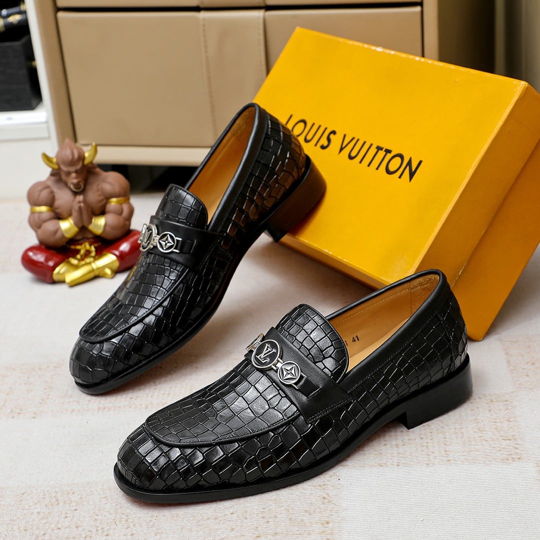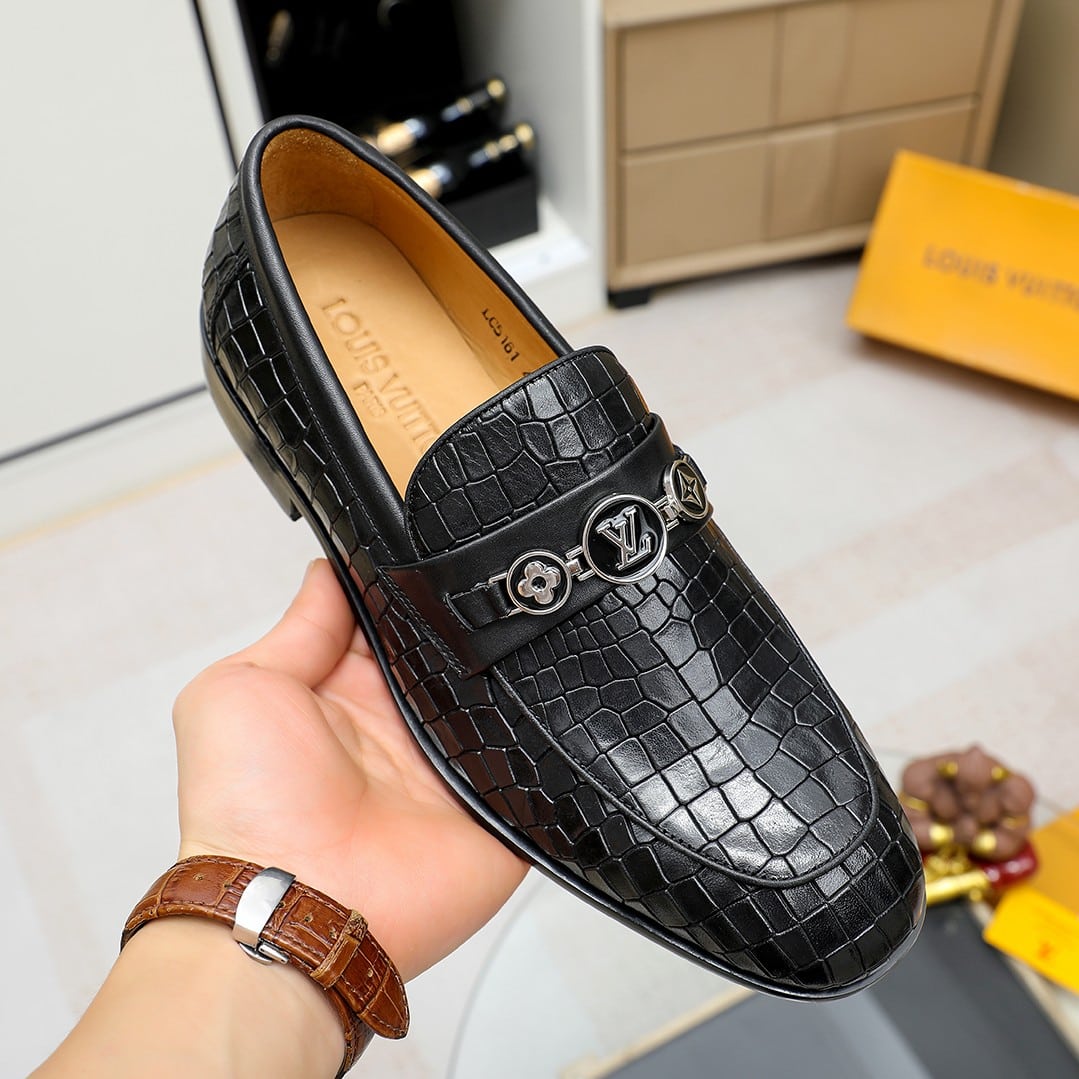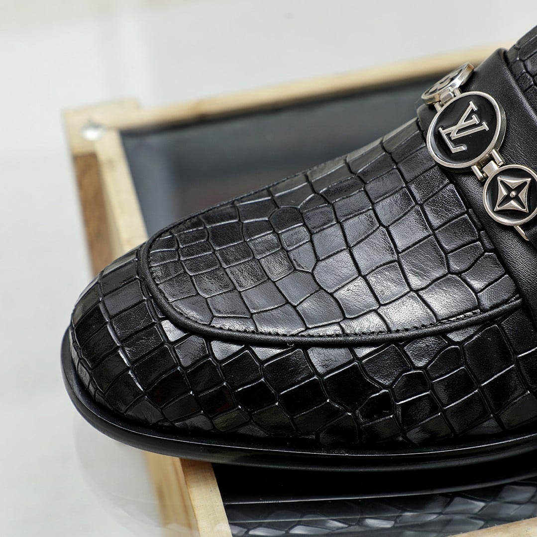 Louis Vuitton Souliers Club Loafers Crocodile Black
