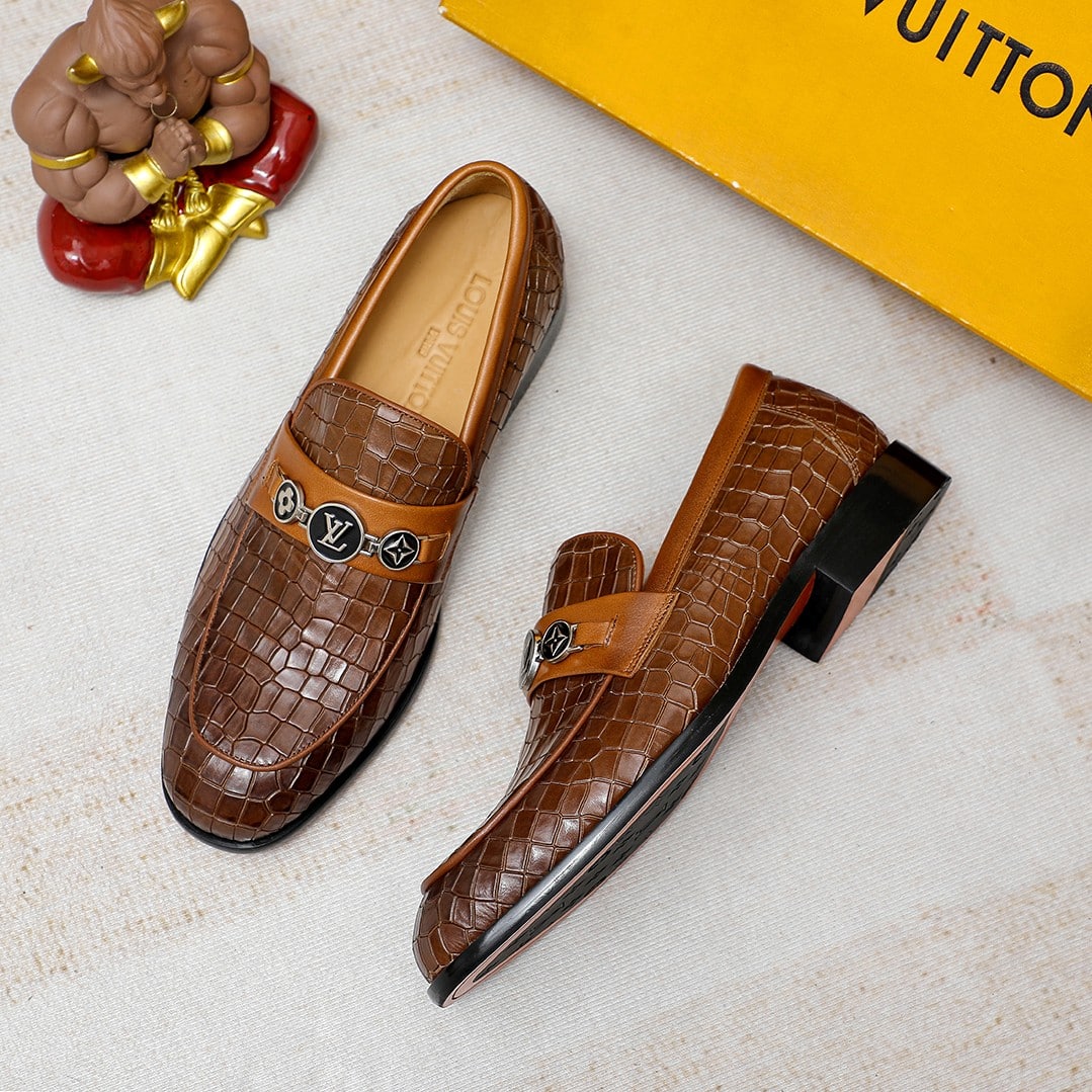 Louis Vuitton Souliers Club Loafers Crocodile Brown