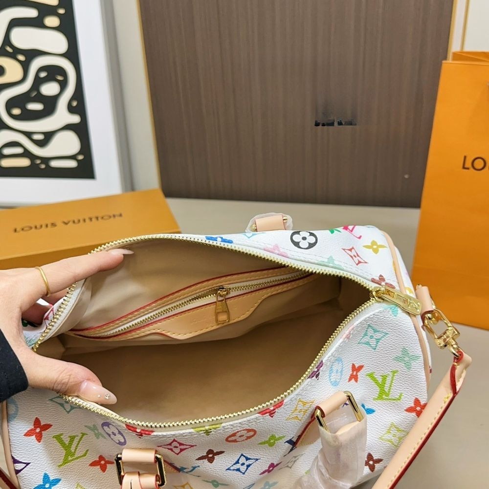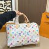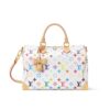 The Speedy Soft 30 is reimagined for the anniversary collection of the Louis Vuitton Monogram, marking 130 years of the iconic House signature. This Multicolor edition is crafted from canvas including a removable bow-tie charm that offsets the gold-toned padlock. It is generously sized to fit everyday essentials and opens to reveal a celebratory leather patch, exclusive to this collection.