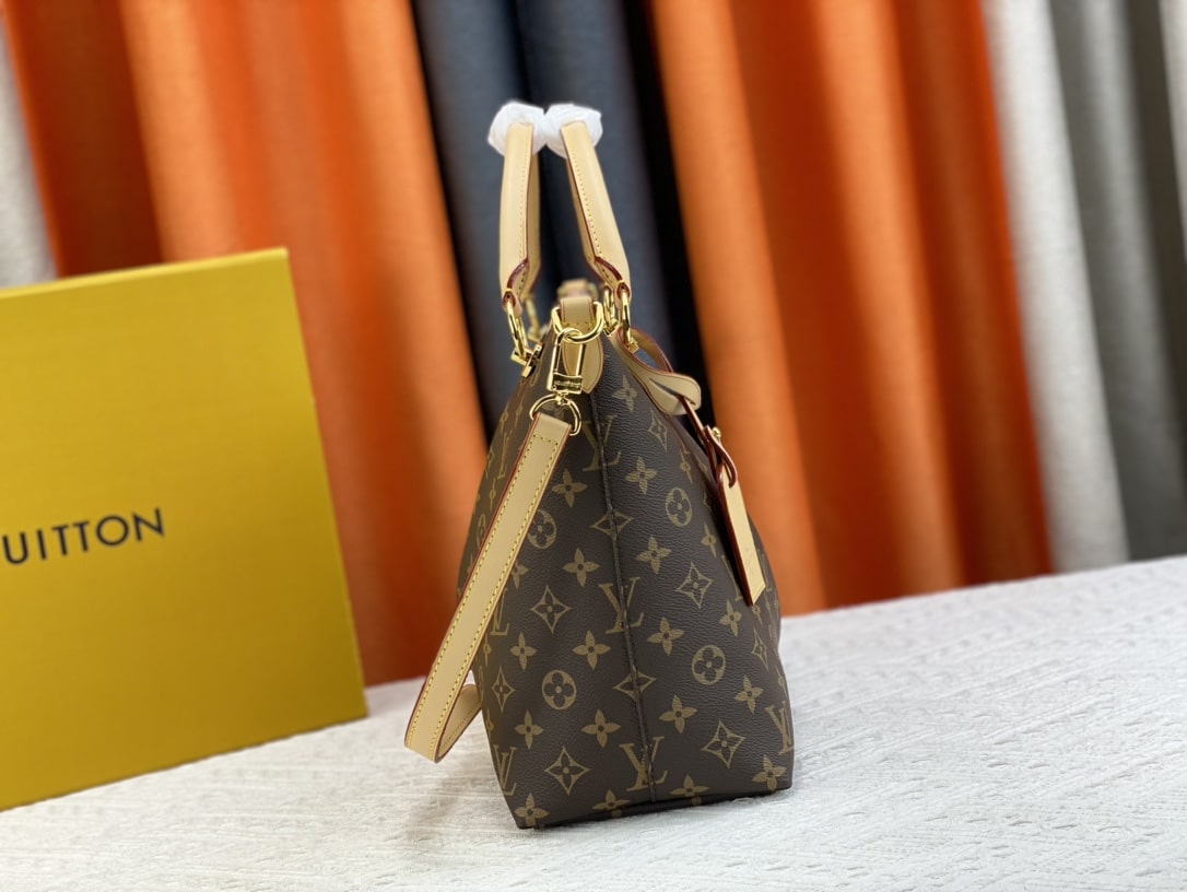 - Monogram coated canvas and grained calfskin exterior