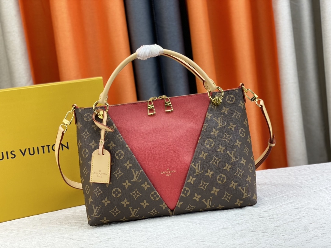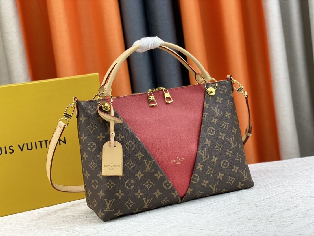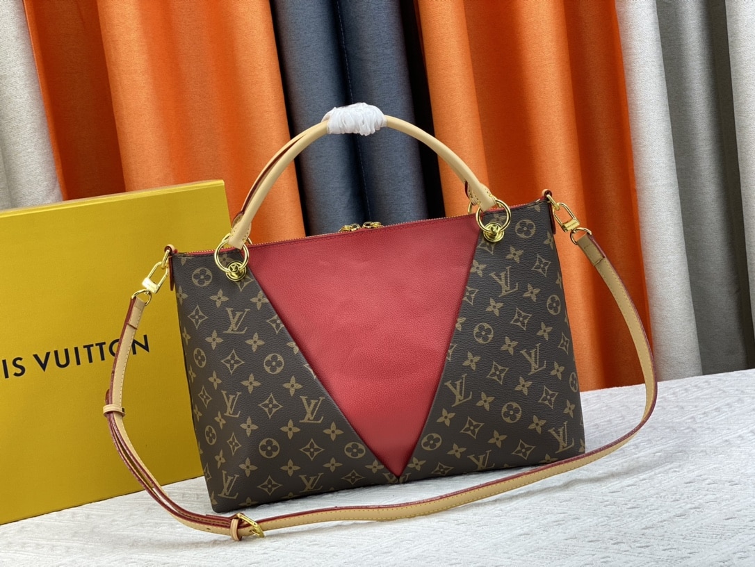 Louis Vuitton V Tote MM Brown And Red 36Cm M43966