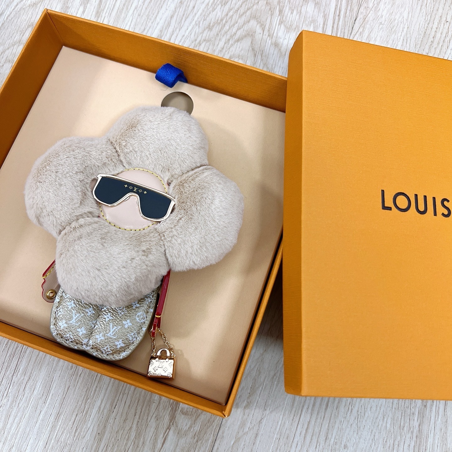 Louis Vuitton Vivienne Bag Charm / Vivienne character / Mink fur flower / Gold-tone metal / Bag Charms