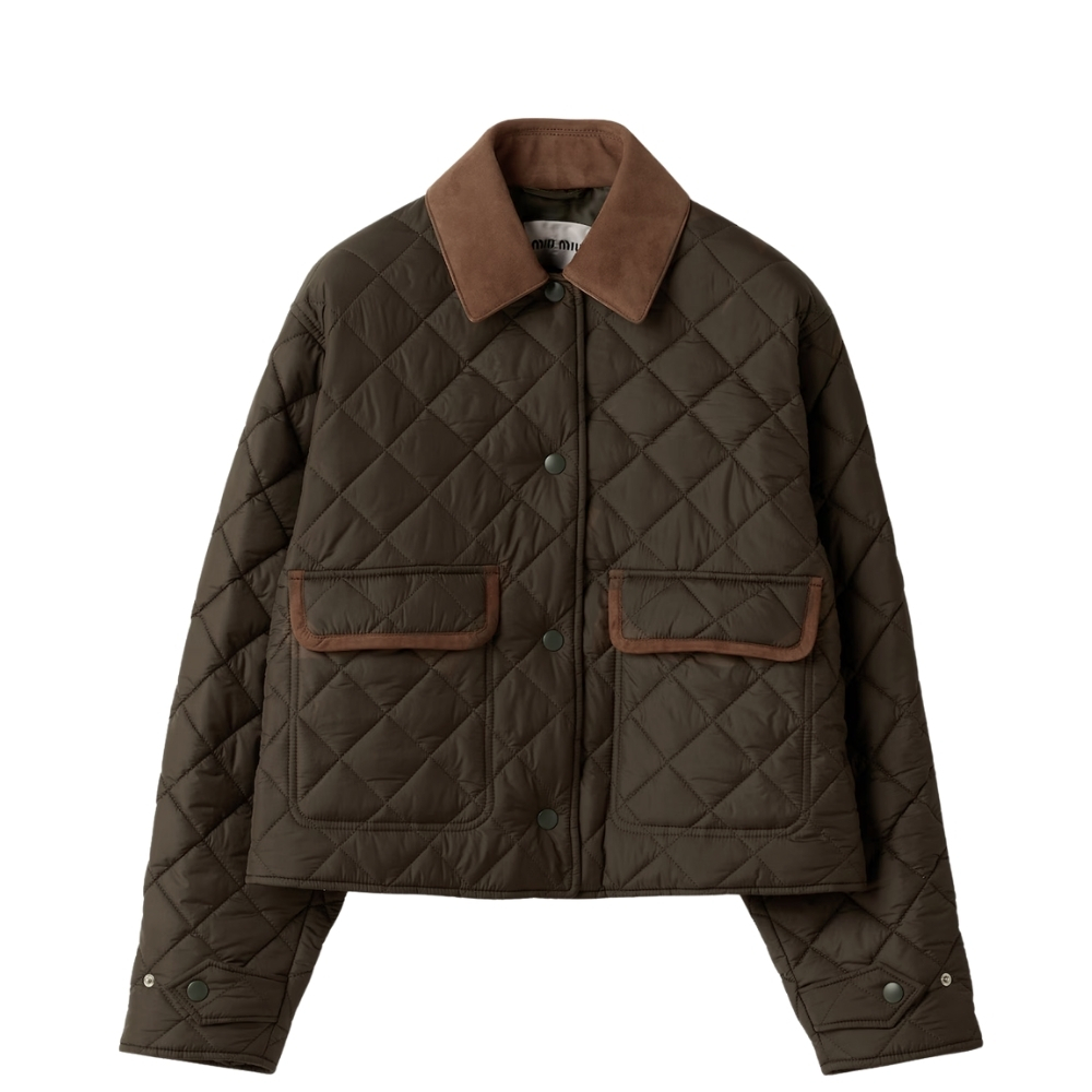 Miu Miu Quilted Technical Ponge Blouson Jacket Dark Brown Ml1310 17Oo F0161 S Ooo