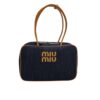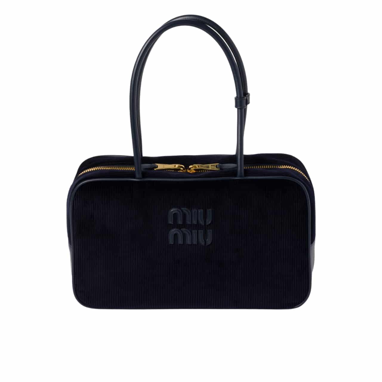MiuMiu Beau Corduroy Top Handle Bag Navy 35Cm 5BB163 2F81 F0124 V OOO