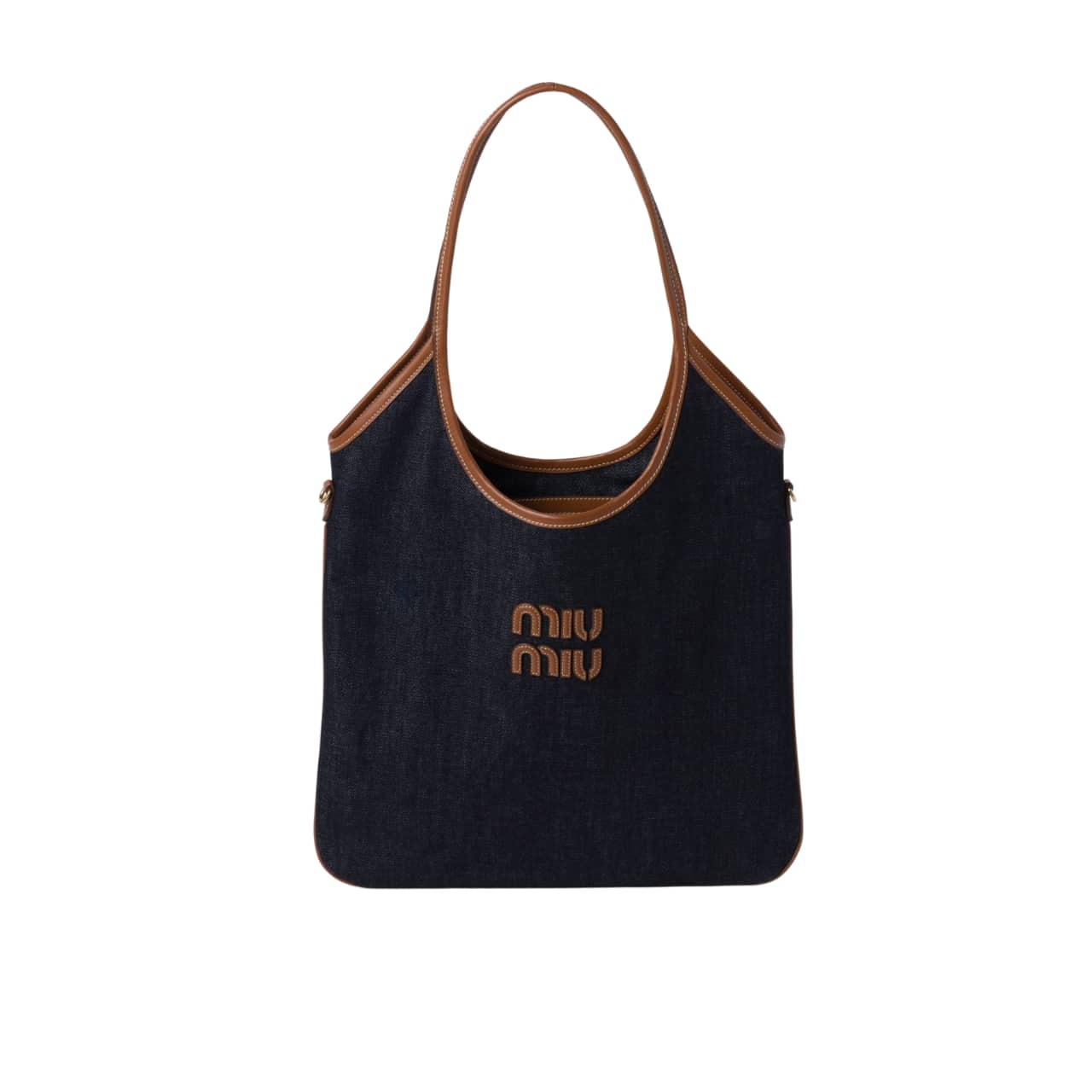 MiuMiu IVY Denim Bag Blue And Brandy 35Cm