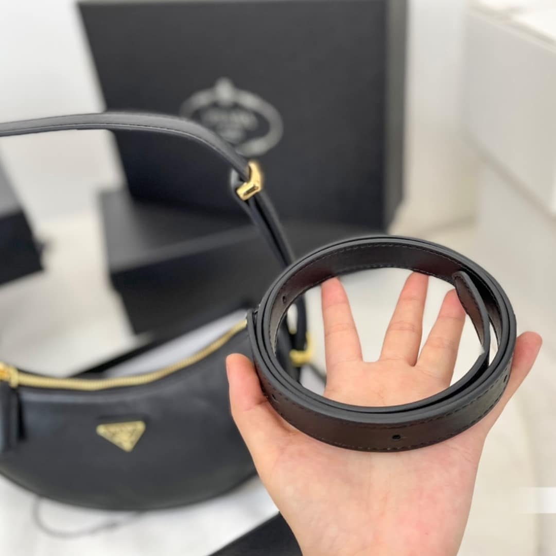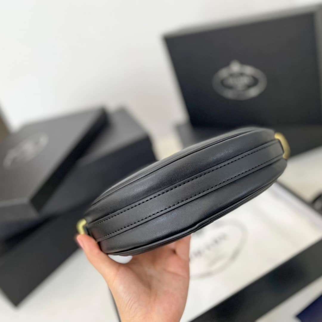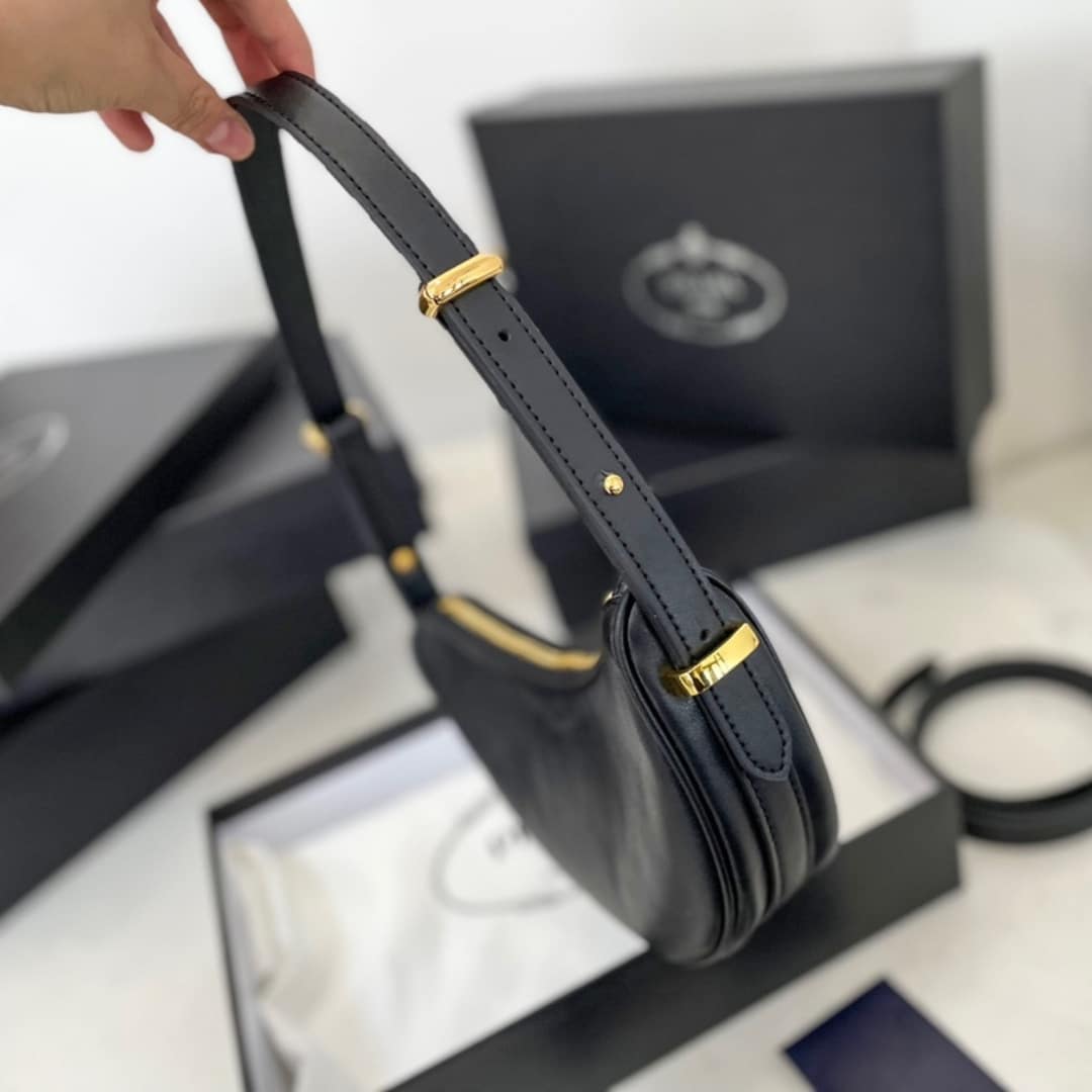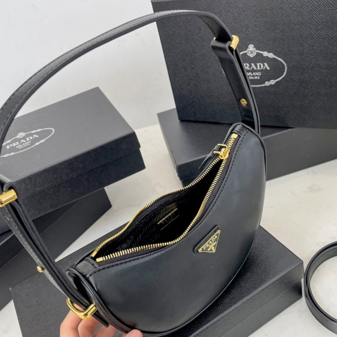 Prada//Arqué Leather Shoulder Bag//Black//23cm//1BC194 ASK F0002 V OOO