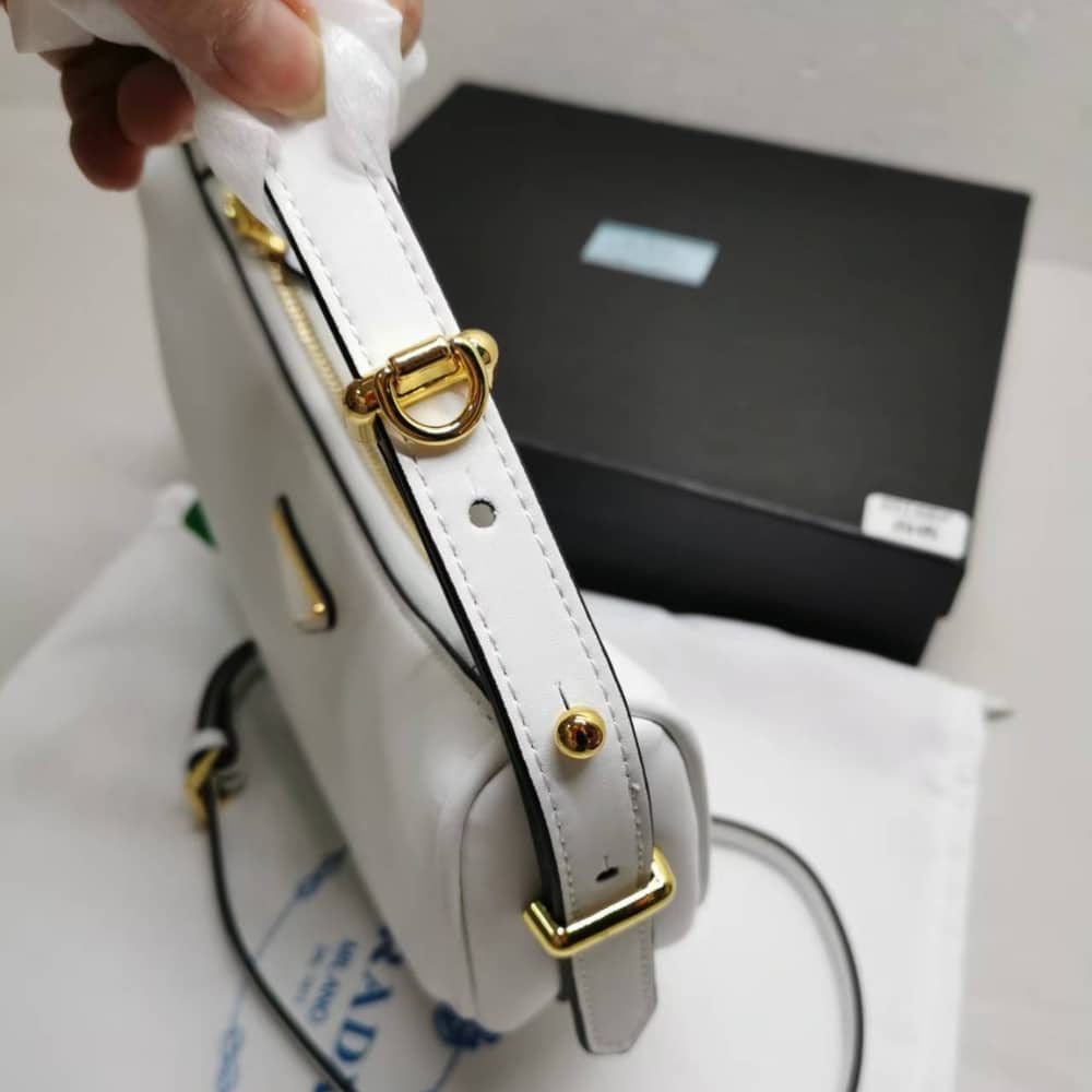 Prada//Arqué Leather Shoulder Bag//White//23cm//1BC194 ASK F0PG7 V OOO