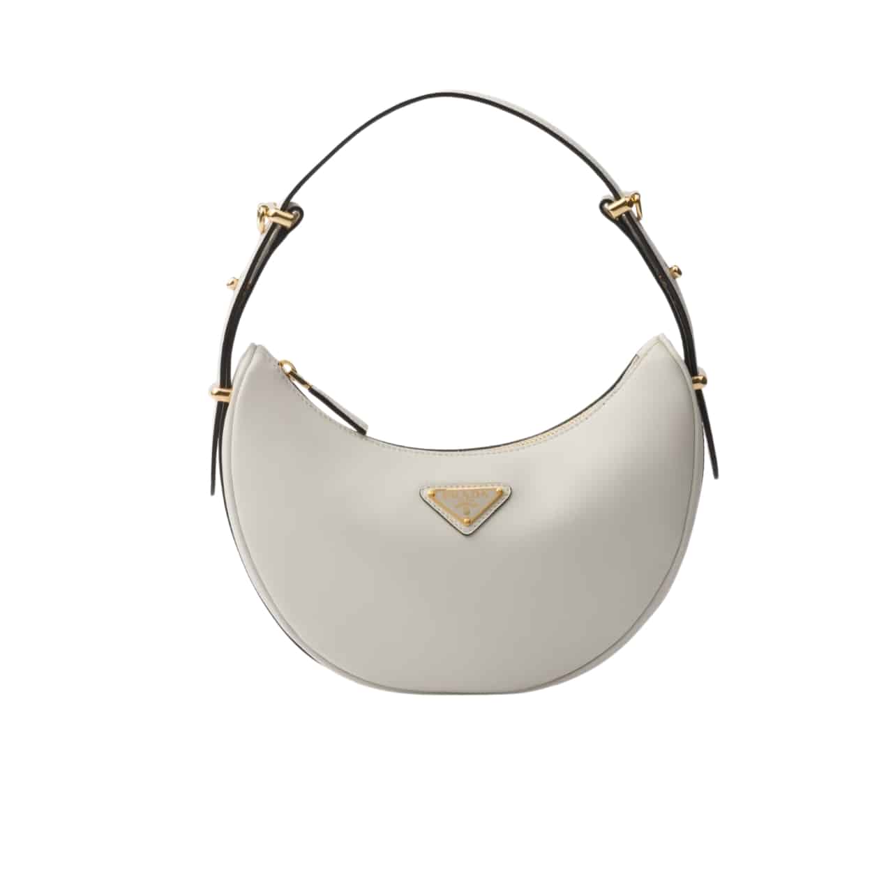 Prada Arqué Leather Shoulder Bag White 23Cm 1Bc194 Ask F0Pg7 V Ooo