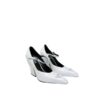 These pumps expressing sophisticated, feminine elegance are made of brushed leather, an emblematic material of Prada since the 90s traditionally used for luxury footwear. The triangle logo returns as a slightly padded leather detail and inspires the geometric line of the heel, which gives the silhouette a modernist note.