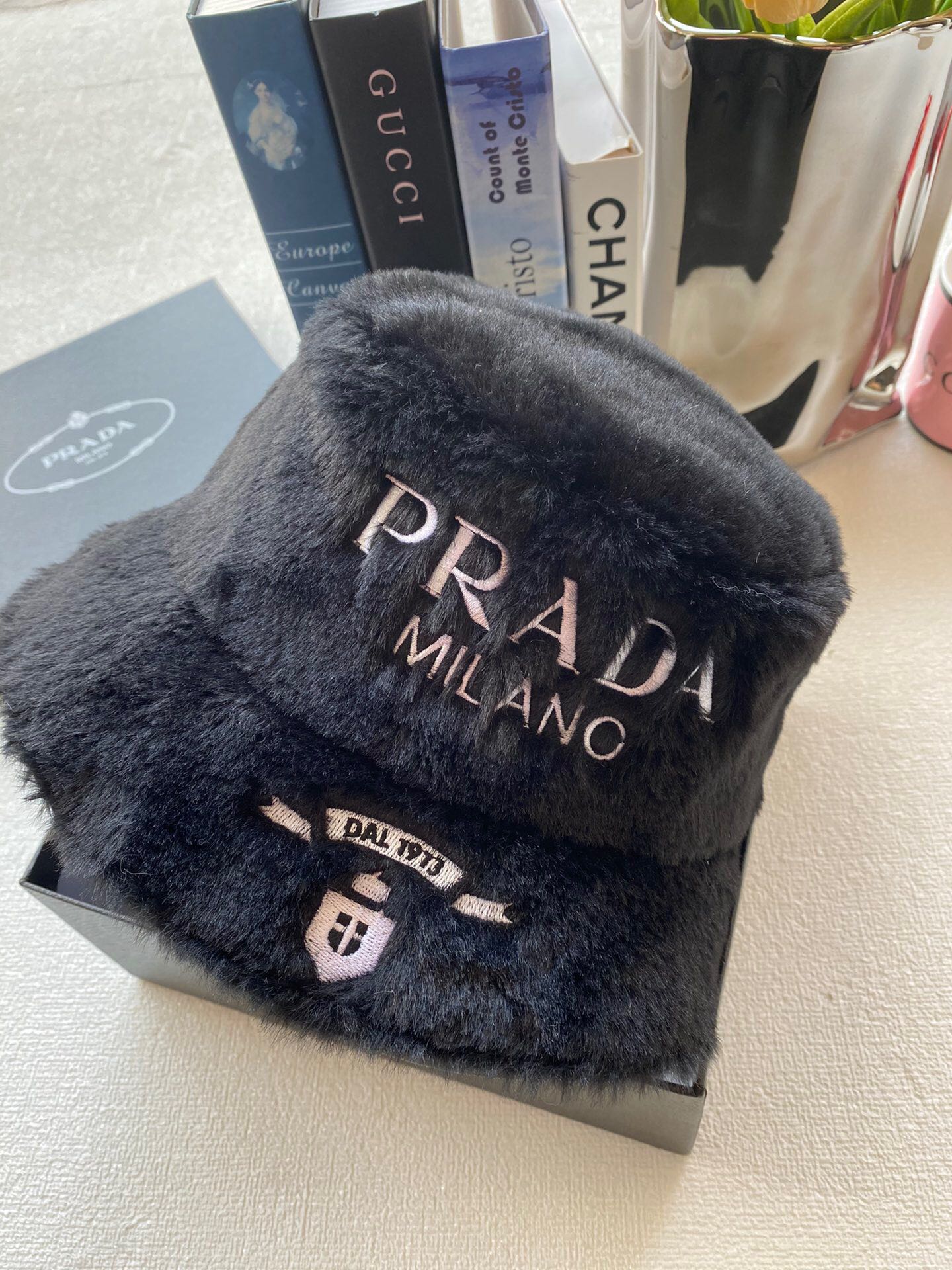 Prada Bucket Hats Wide-Brimmed Hats Black