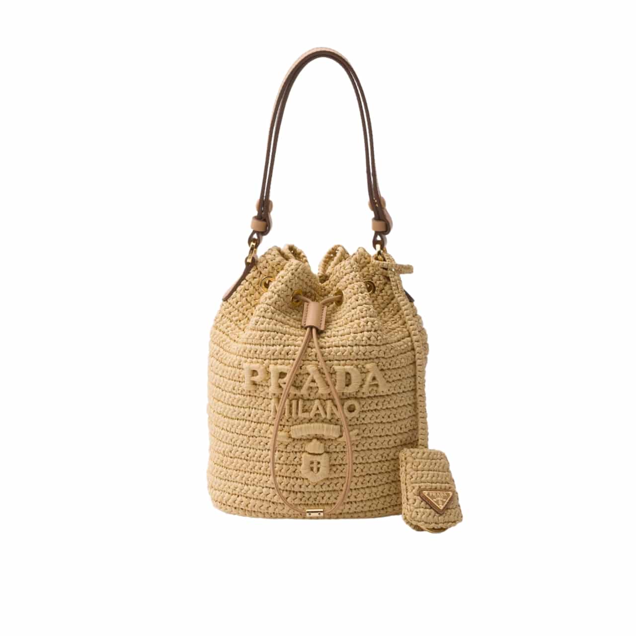 Prada Crochet And Mini Bucket Bag Natural 20Cm 1BE068 2M2T F0018 V OUO