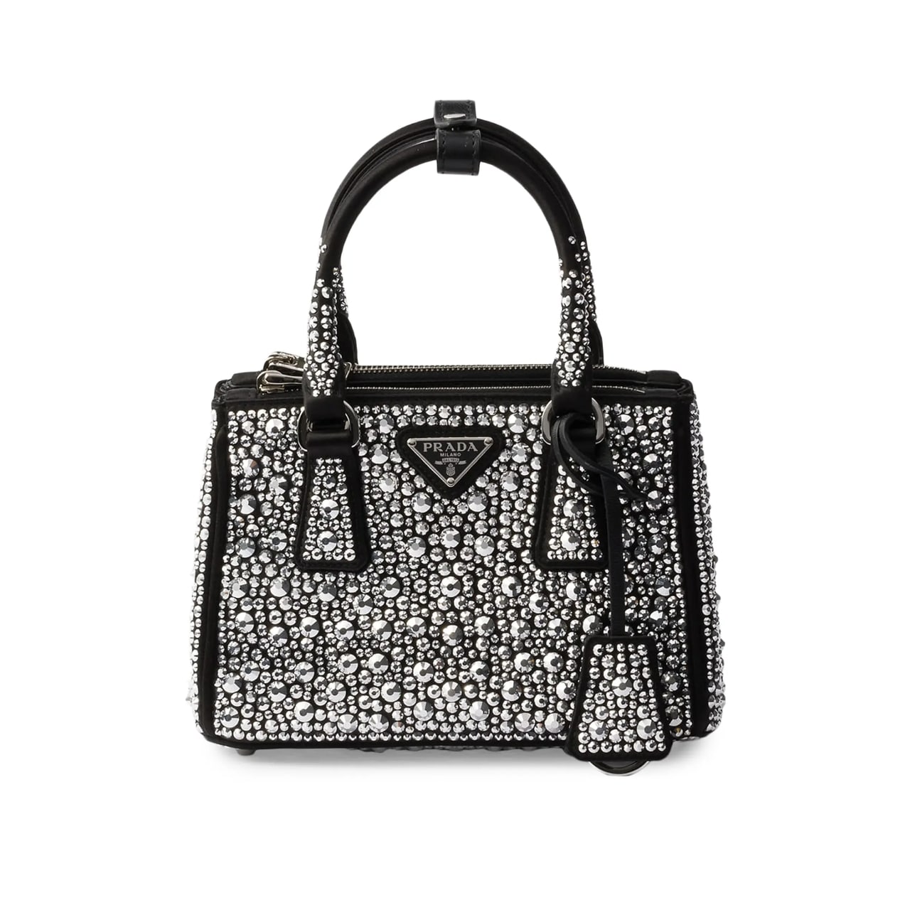 - All-over synthetic crystals applied by hand