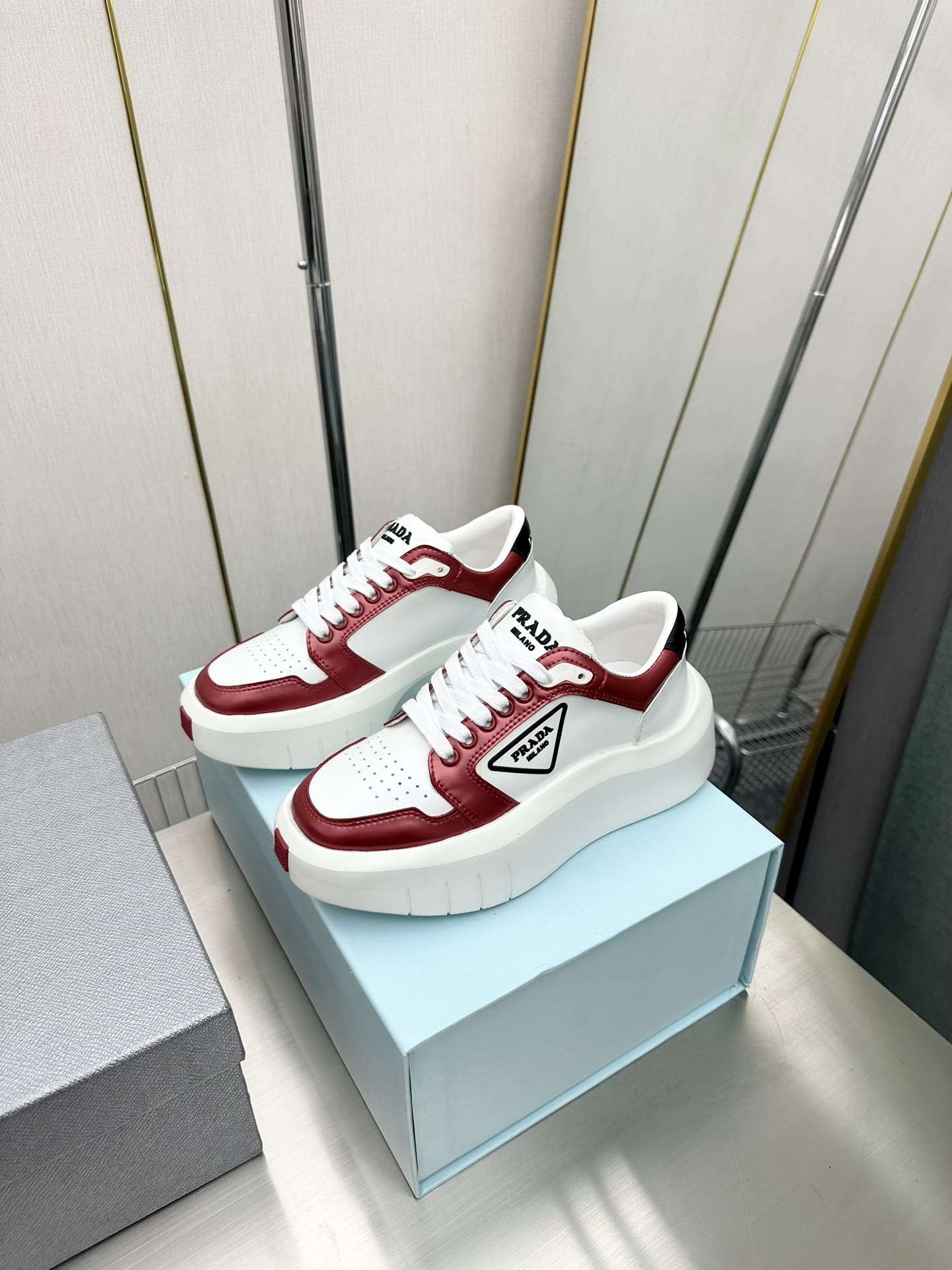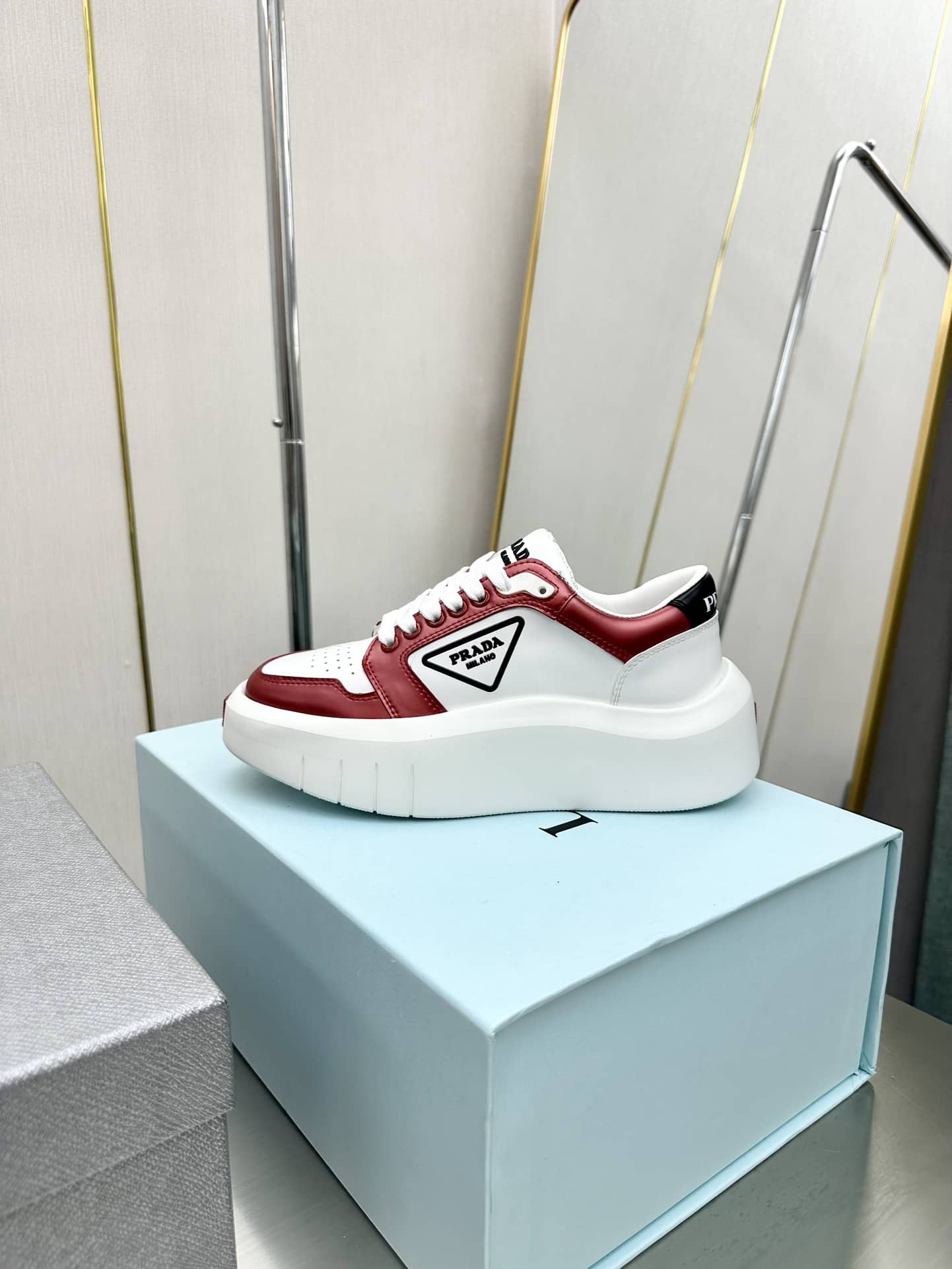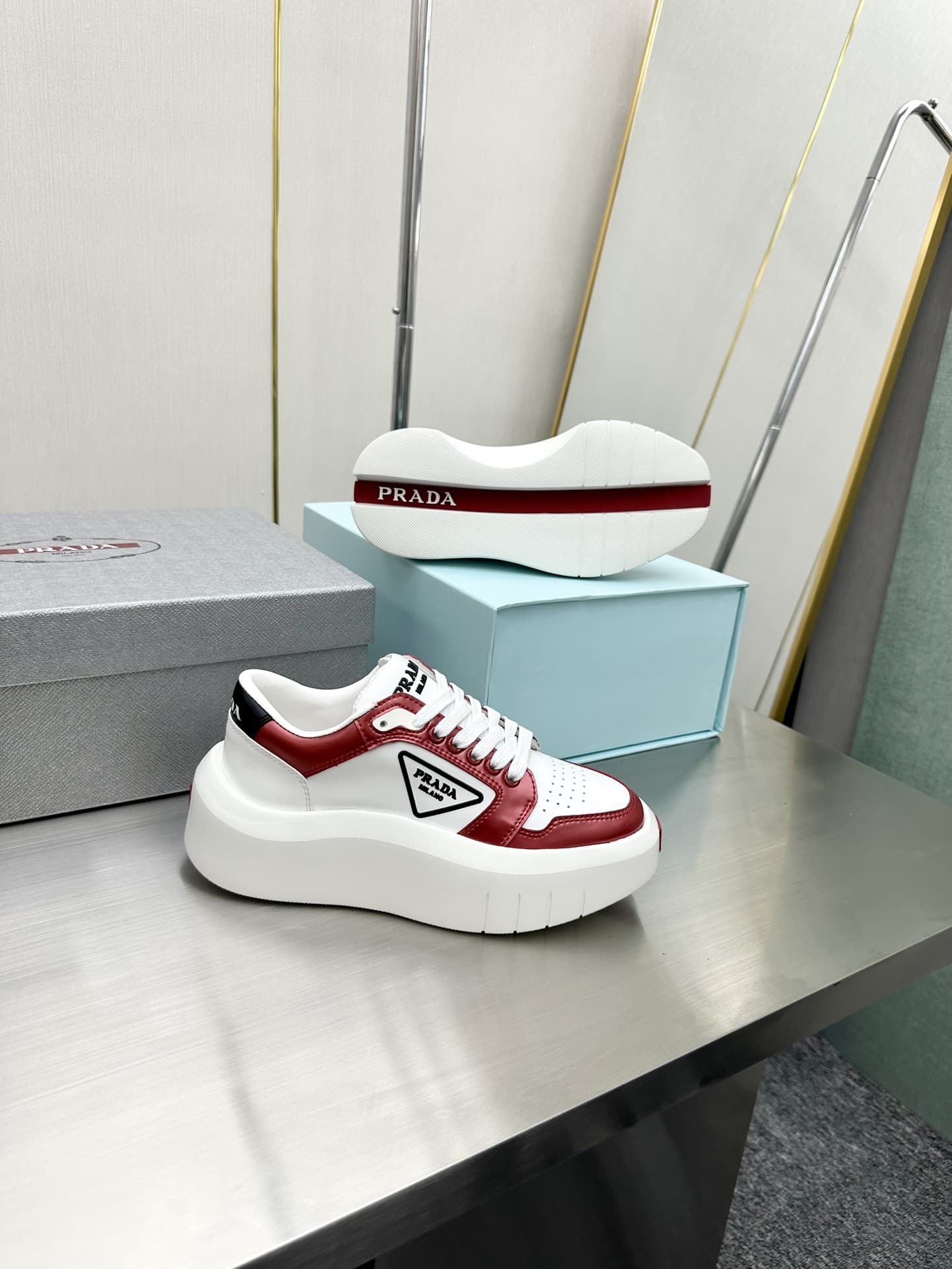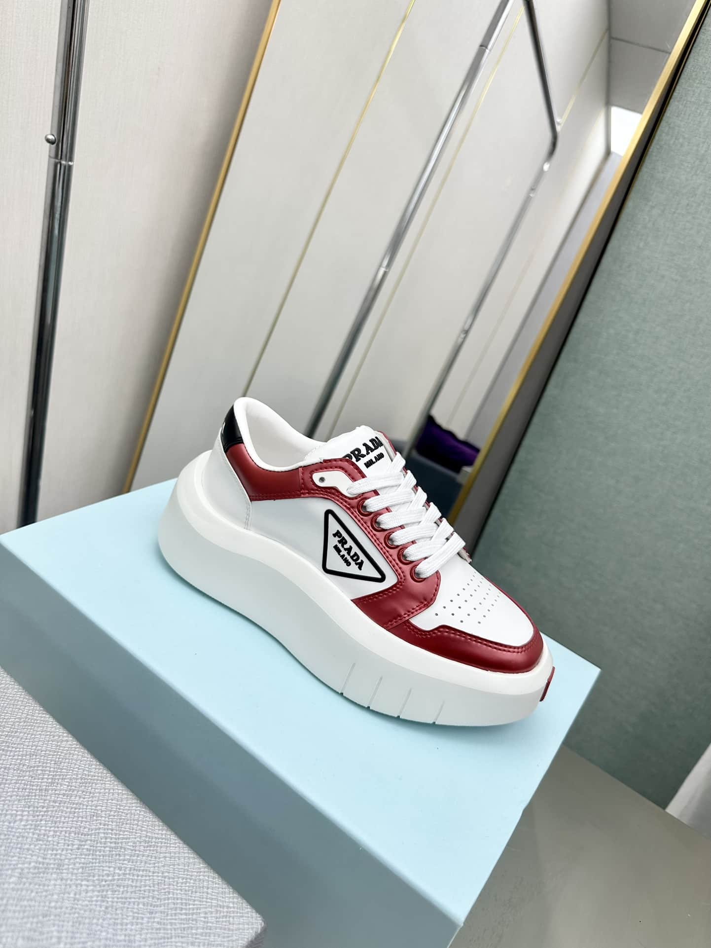 Prada Leather Platform Sneakers White And Red