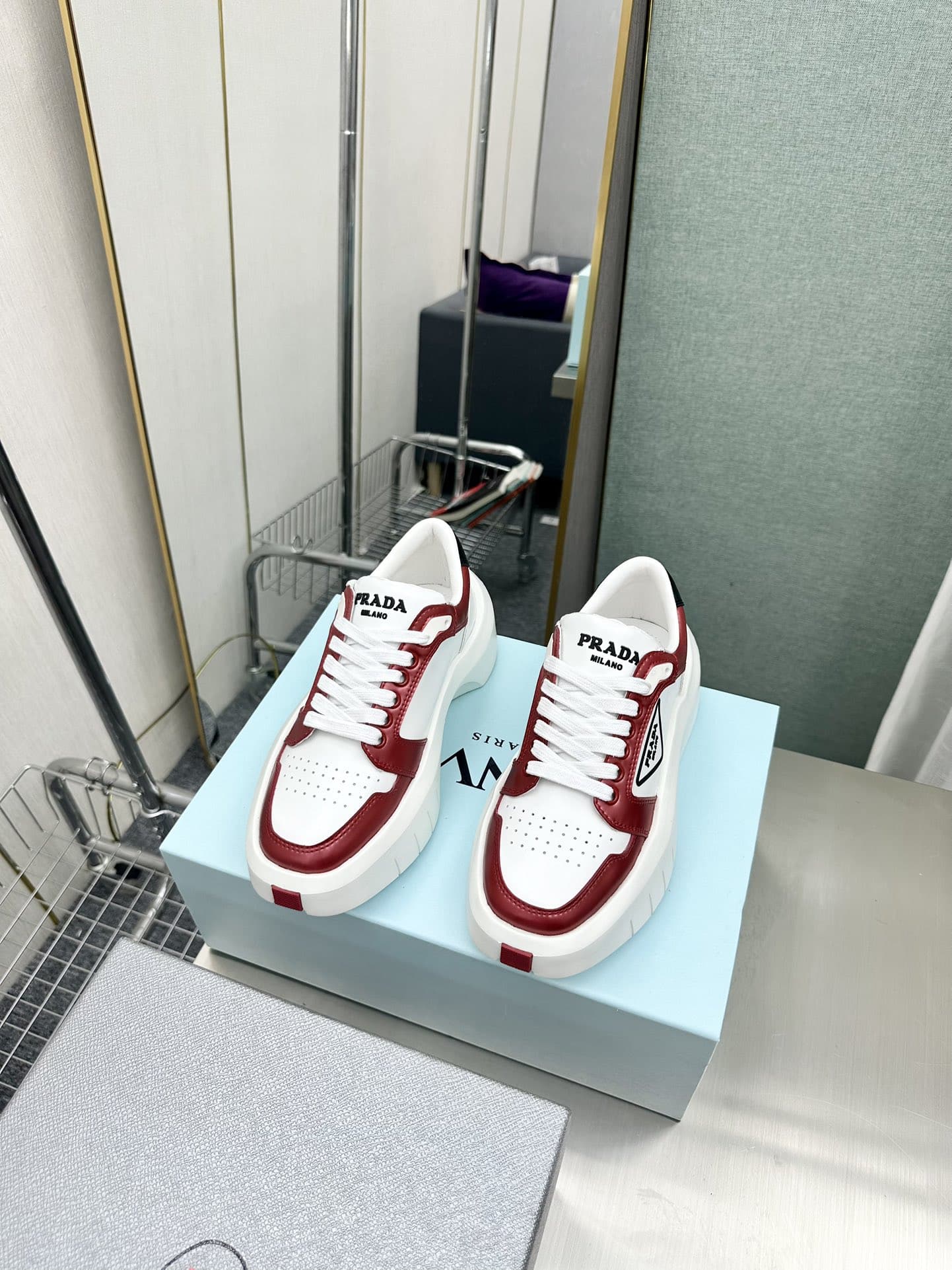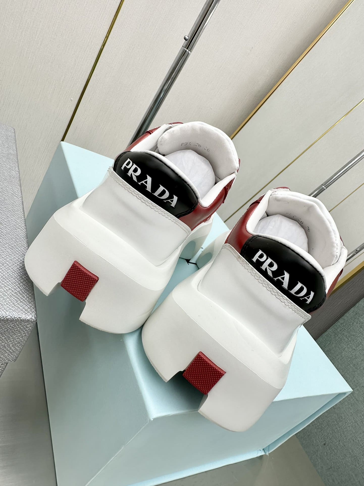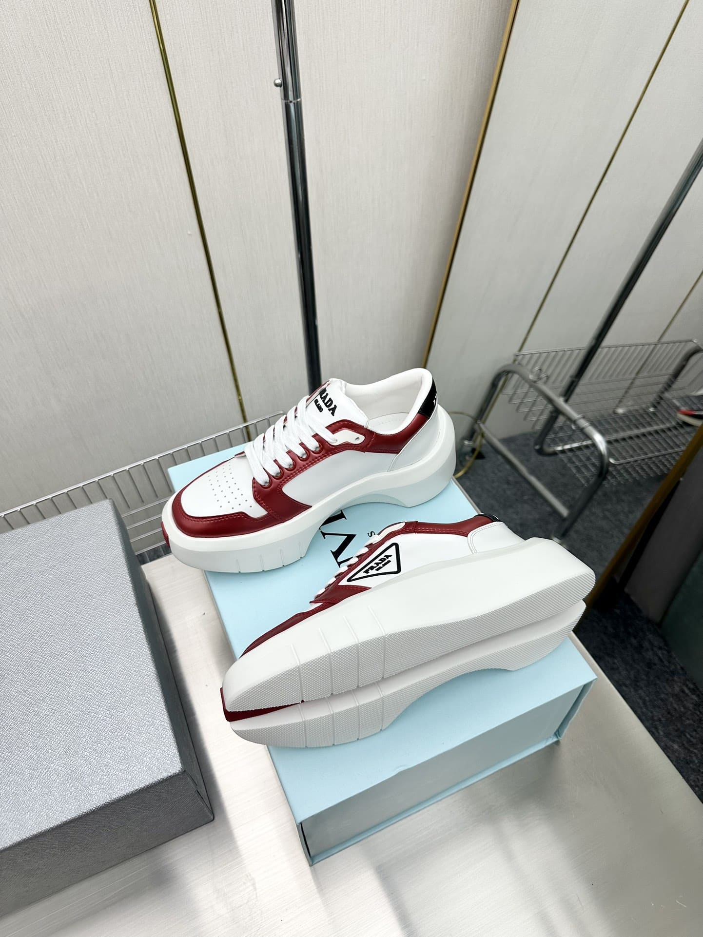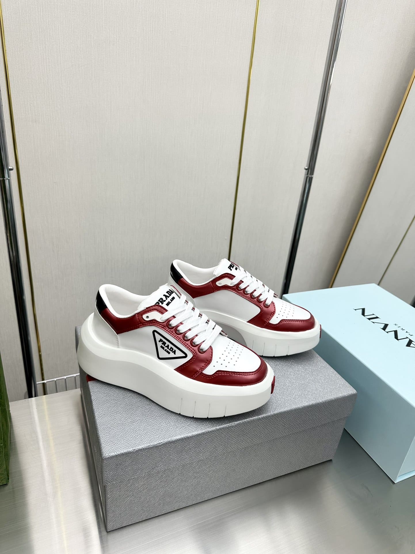 Prada Leather Platform Sneakers White And Red