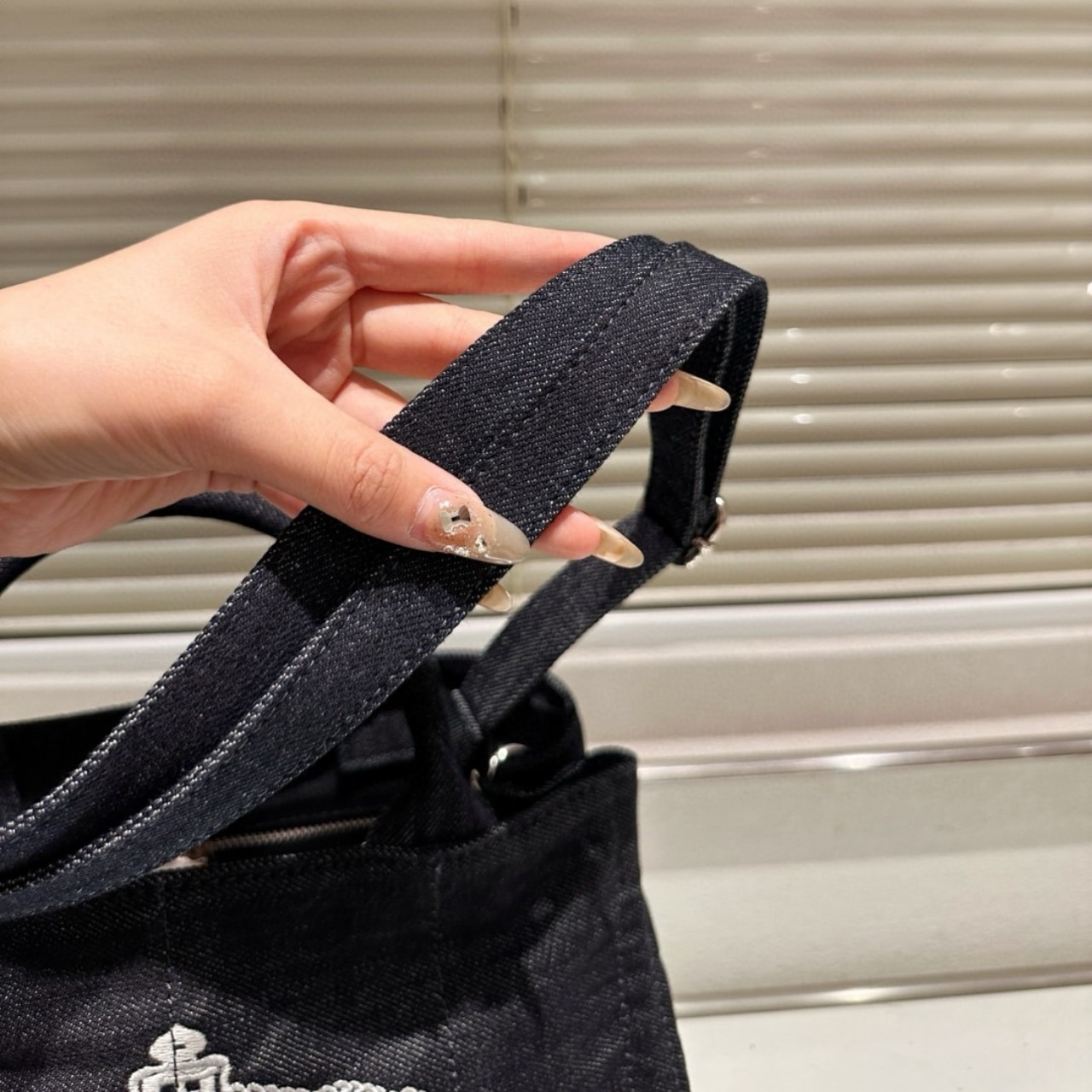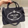 Prada Logo Printed Denim Tote Bag Black 26Cm / 10.2 inches