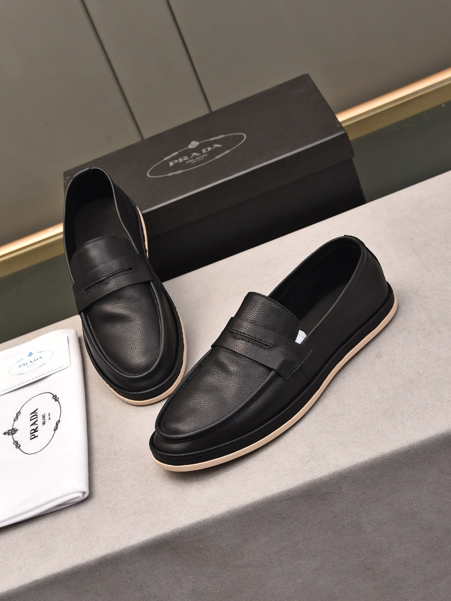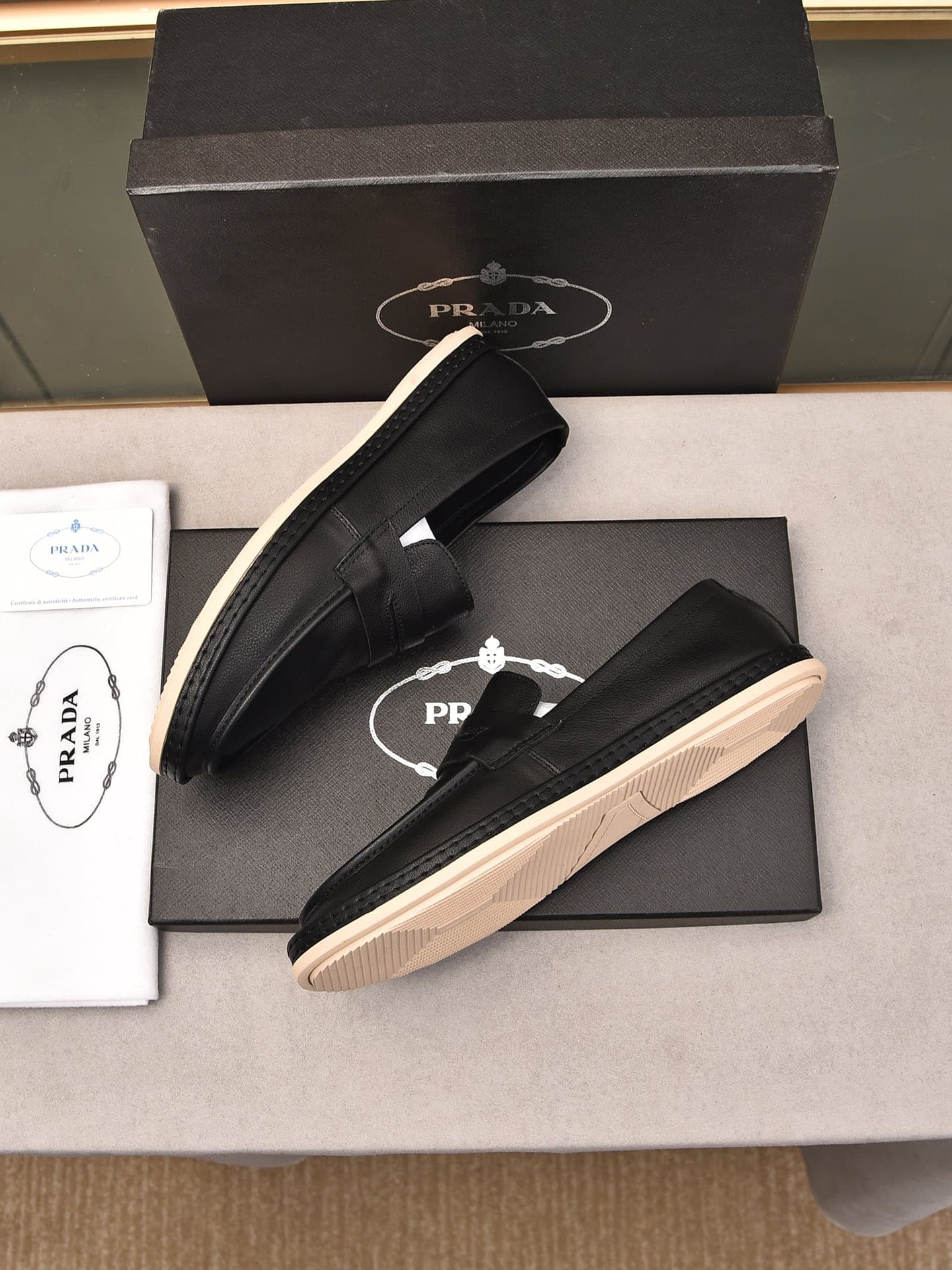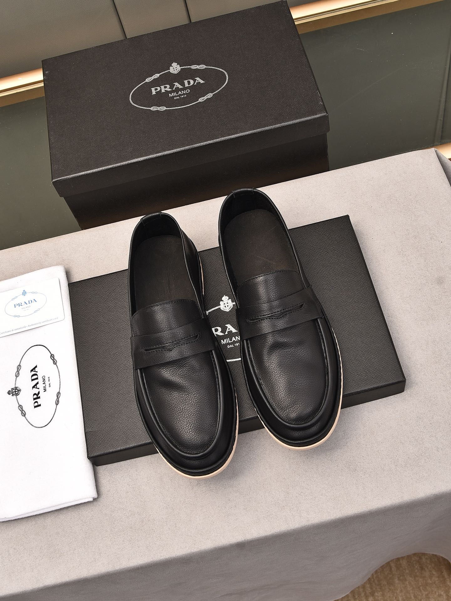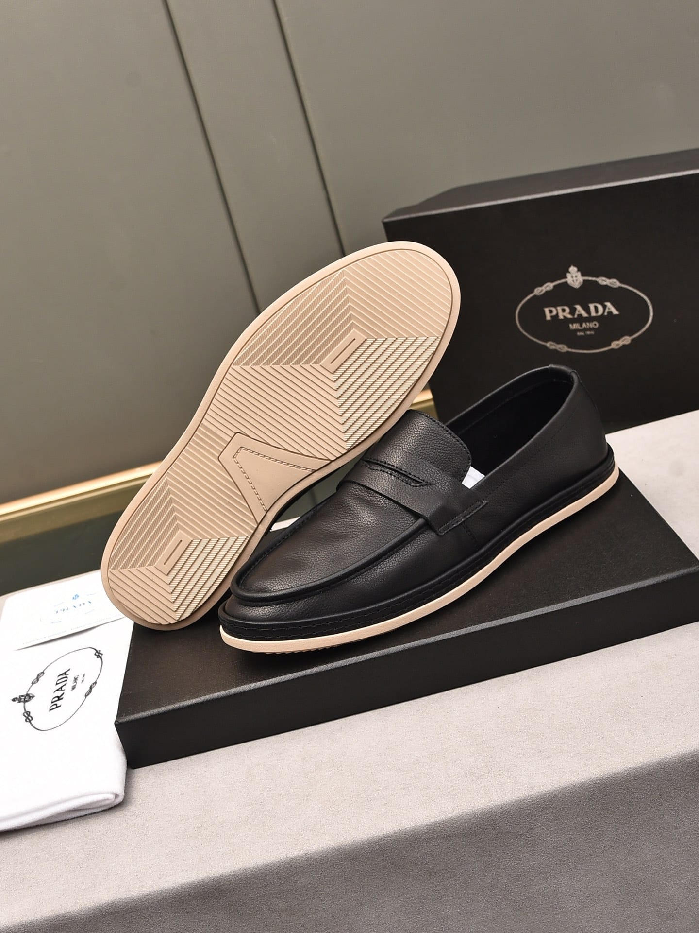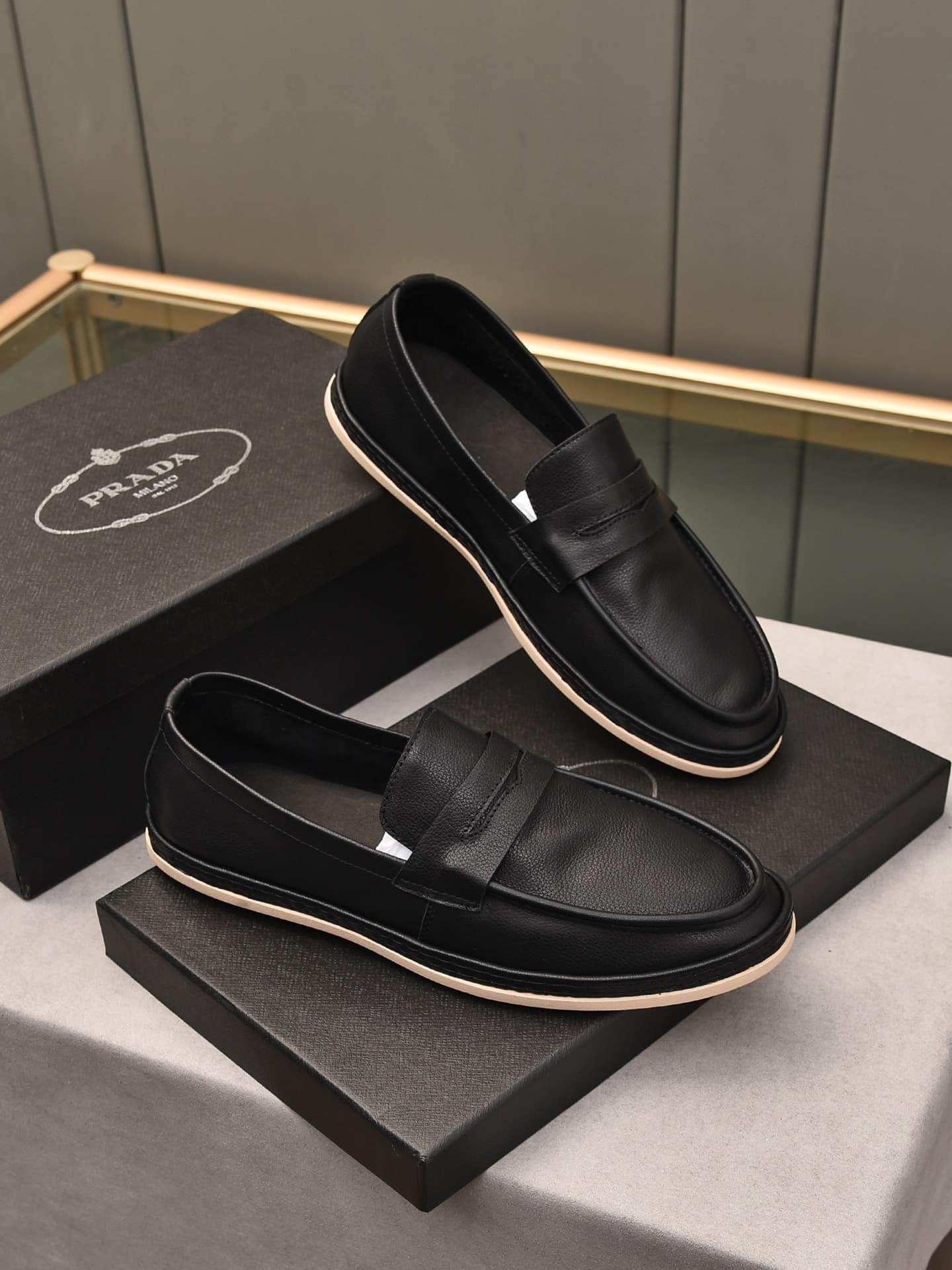 Prada Men'S Flat Loafers Leather Black
