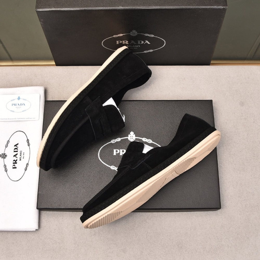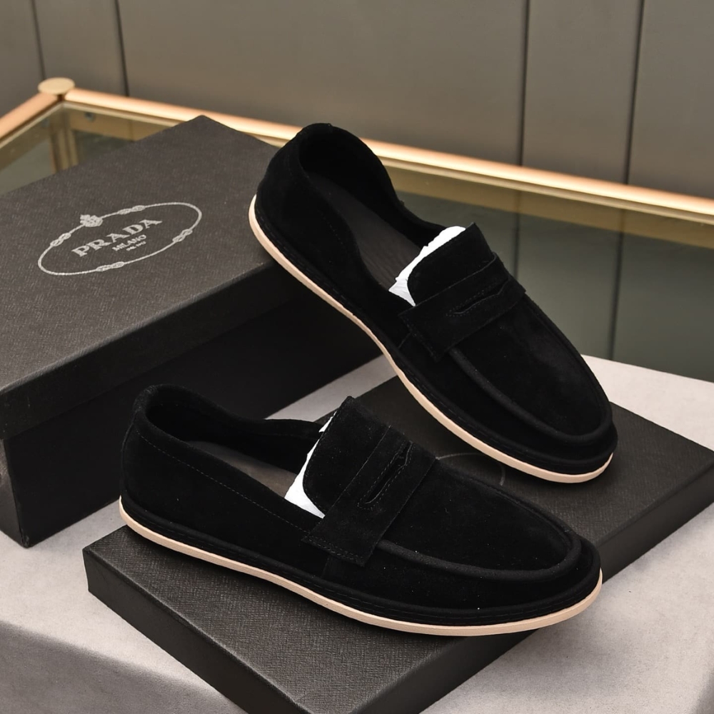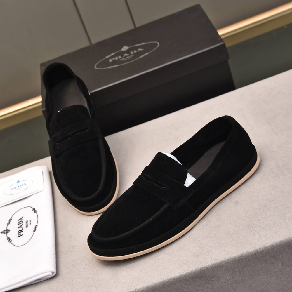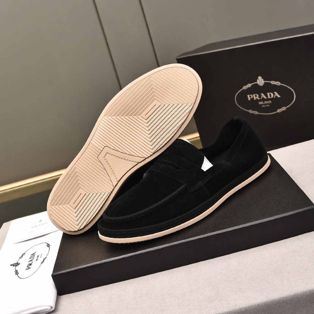 Prada Men'S Suede Loafers Leather Black