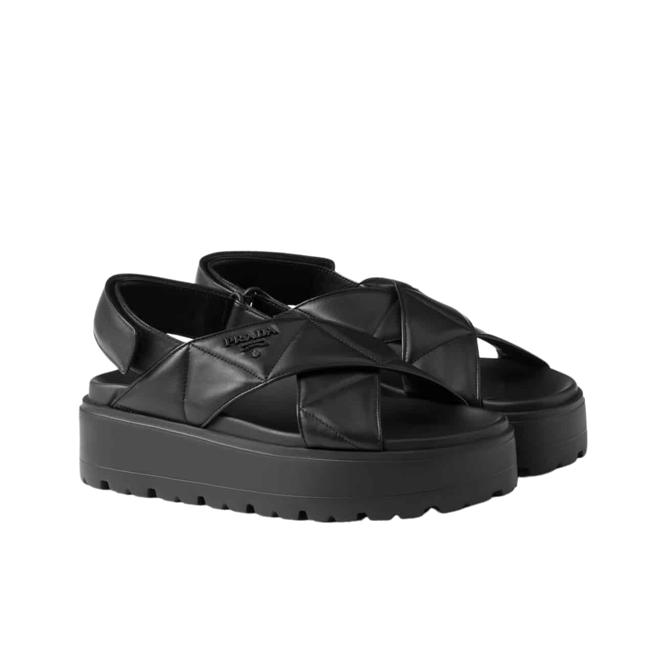 Prada Nappa Leather Crisscross Flatform Sandals Black 1Xz777 038 F0002 F 045