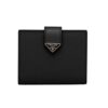 Prada Saffiano Leather Vertical Short Wallet Flap Triangle Logo Black 10 cm / 3.5 inches