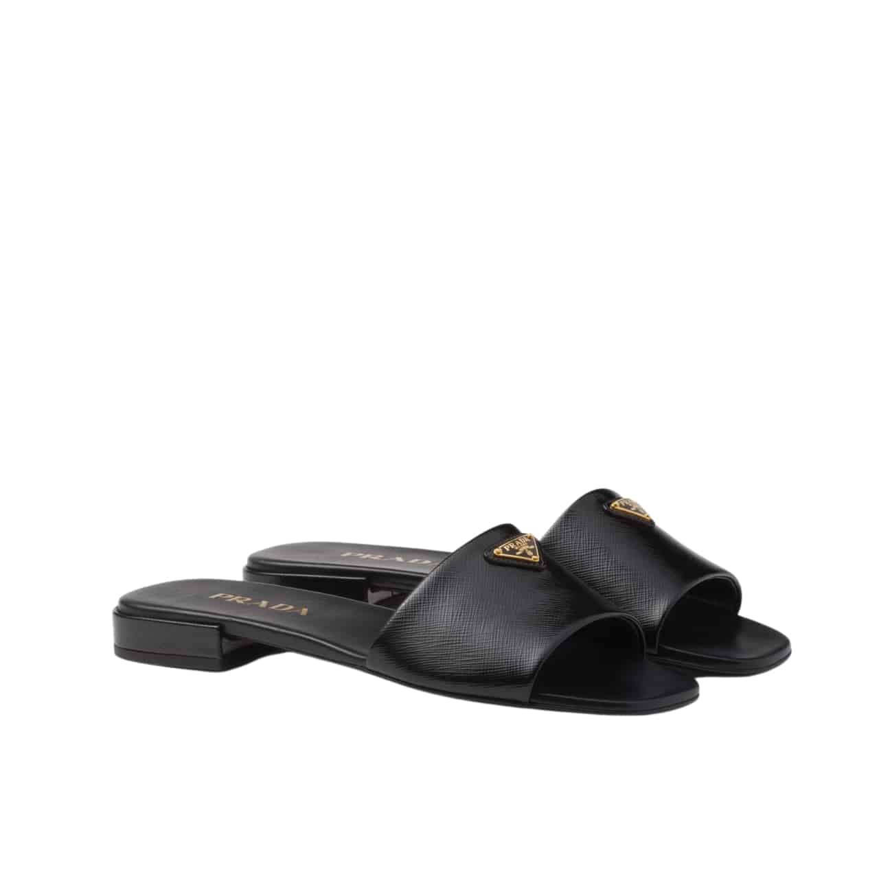Prada Saffiano Patent Leather Slides Black 1Xx730 3A9S F0002 F 010