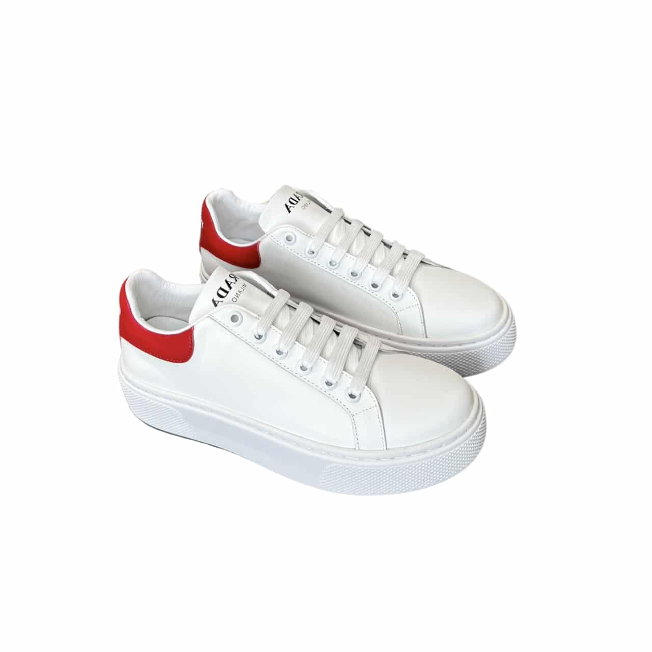 Prada Sneakers In White Leather With Red Logo
