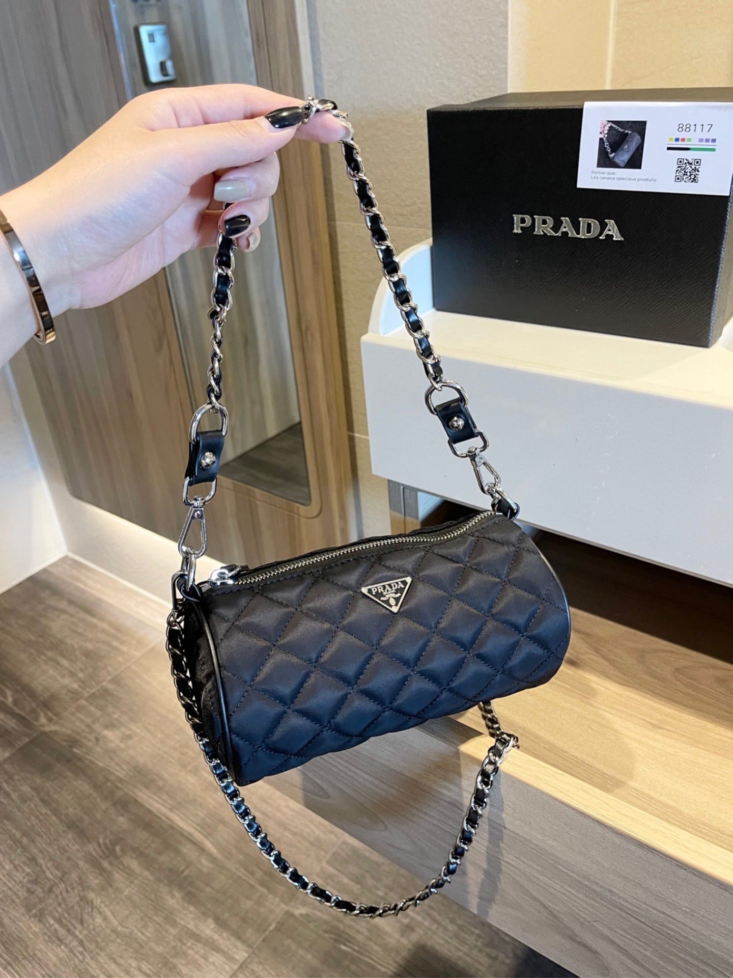 Prada//Tessuto Black Quilted Barrel Bag//Black//20cm